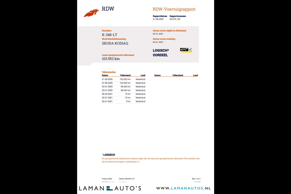 • Logische tellerstand met NAP (RDW gecontroleerd)
