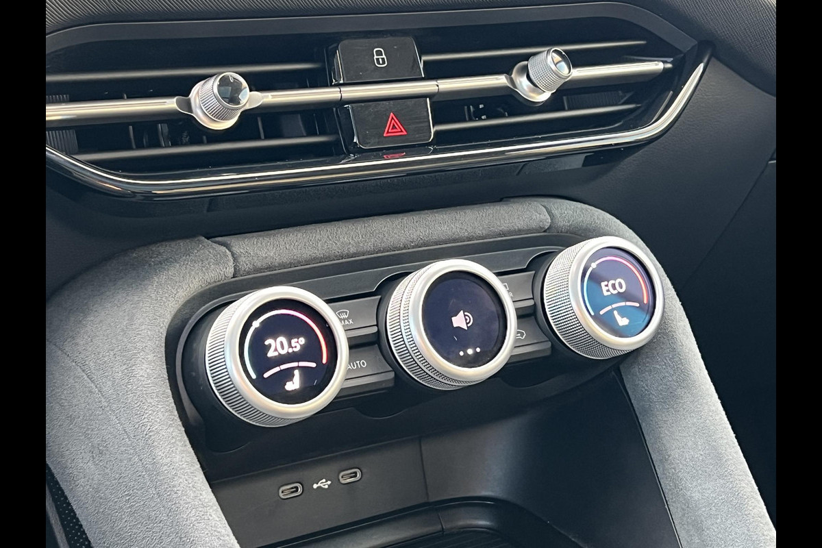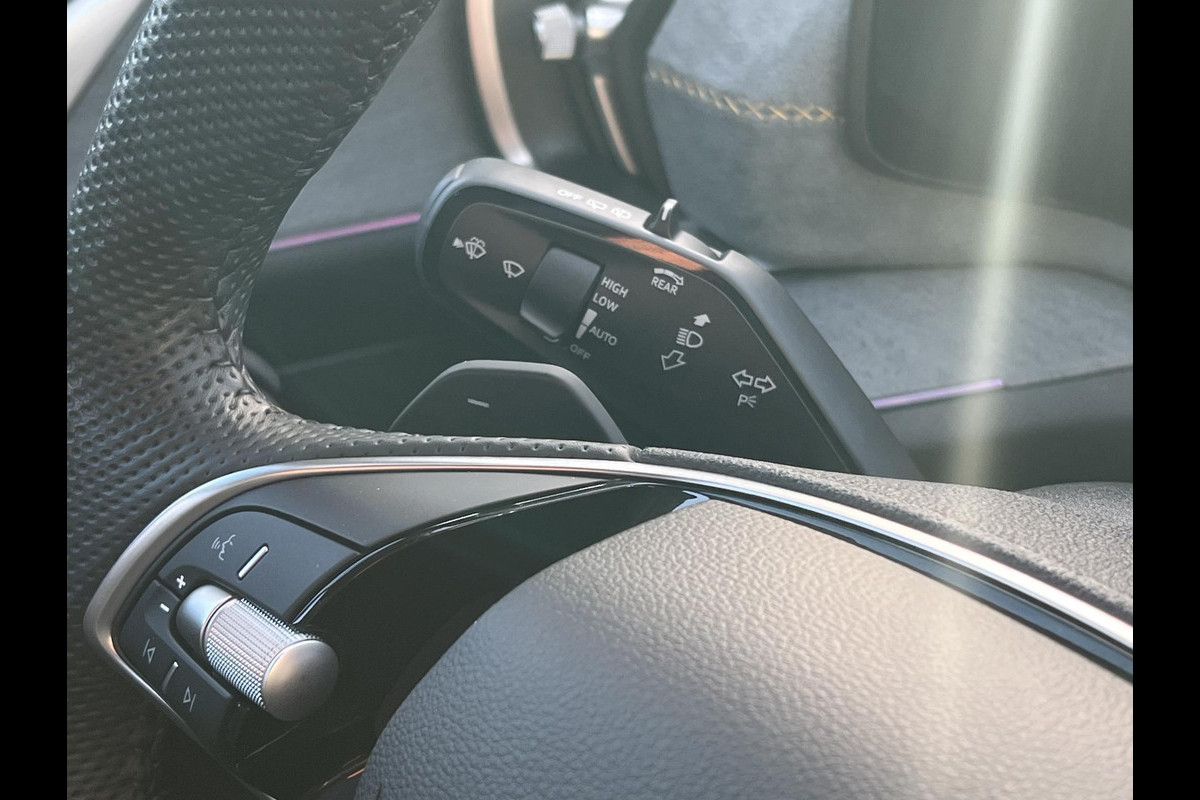Een gevisualiseerd overzicht van alle belangrijke functies wordt geleverd door het digitale dashboard. Nooit meer parkeerschade dankzij de achteruitrijcamera. Met adaptive cruise control houdt deze auto automatisch afstand tot uw voorligger. In het zeldzame geval van een storing weet u nog eerder dan de monteur wat er mankeert. Uw smartphone met remote services geeft direct inzicht. Gemakkelijk en veilig is de spraakbediening voor het audio-installatiesysteem en het navigatiesysteem. Daarbij kunt u deze ook bedienen met de knoppen op het stuur. De audio-kwaliteit is geweldig, dankzij de DAB-ontvangst. En dan is deze auto ook nog eens voorzien van automatische airconditioning, sportstuur met schakelpaddels, draadloos opladen, regensensor, keyless entry en buitentemperatuurmeter.