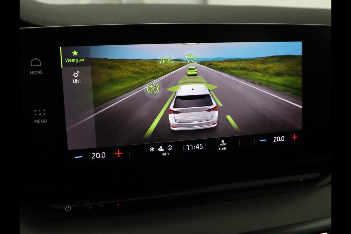 Deze Skoda biedt u niet alleen comfort en rijplezier, maar ook veiligheid. Actieve veiligheidssystemen houden voor u de weg in de gaten en reageren op onvoorziene situaties voordat u dat kunt. Verkeersbord-detectie herkent verkeersborden en toont deze op het instrumentarium van de auto. Een camera houdt de juiste koers binnen de rijstrook in de gaten en het Lane-keeping systeem corrigeert bij afwijkingen. Kop-staartbotsingen vormen een belangrijk deel van de meest voorkomende aanrijdingen. De forward collision warning van deze auto voorkomt zulke botsingen geheel of reduceert de ernst van de schade aanzienlijk. Ook helpen het hill hold functie, vermoeidheidsherkenning, autonoom remsysteem en bandenspanningcontrolesysteem, uw rit tot een veilige rit te maken.