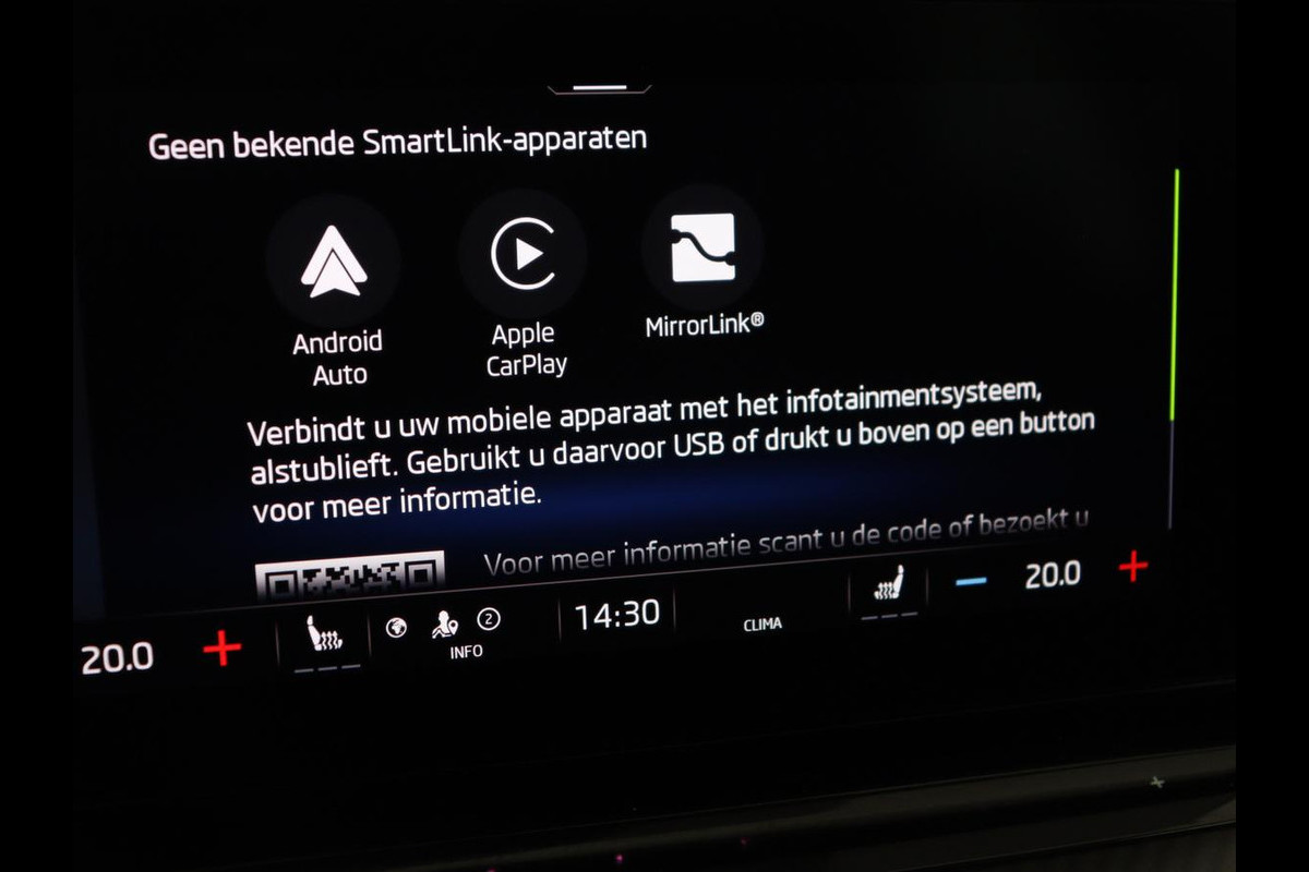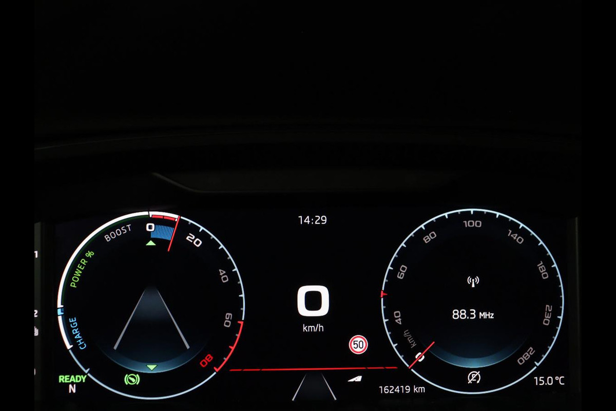 Rijfuncties worden glashelder en overzichtelijk weergegeven via het digitale dashboard. De achteruitrijcamera levert eersteklas parkeerservice. U weet precies hoeveel ruimte u nog heeft, in beeld en geluid. Adaptive cruise control houdt de ingestelde snelheid vast en houdt automatisch afstand tot uw voorligger. Spraaksturing is onderdeel van de uitrusting van deze auto. Met uw stem kunt u de belangrijkste voertuigfuncties bedienen. Zo'n lekkere jonge auto heeft natuurlijk leuke extra's, zoals remote services. Met een speciale app maakt u overal verbinding met de auto. Zo kunt u functies activeren en controleren. De Skoda is standaard voorzien van: full map navigatiesysteem, automatische airconditioning, sportstuur met schakelpaddels, draadloos opladen, DAB ontvangst en regensensor.