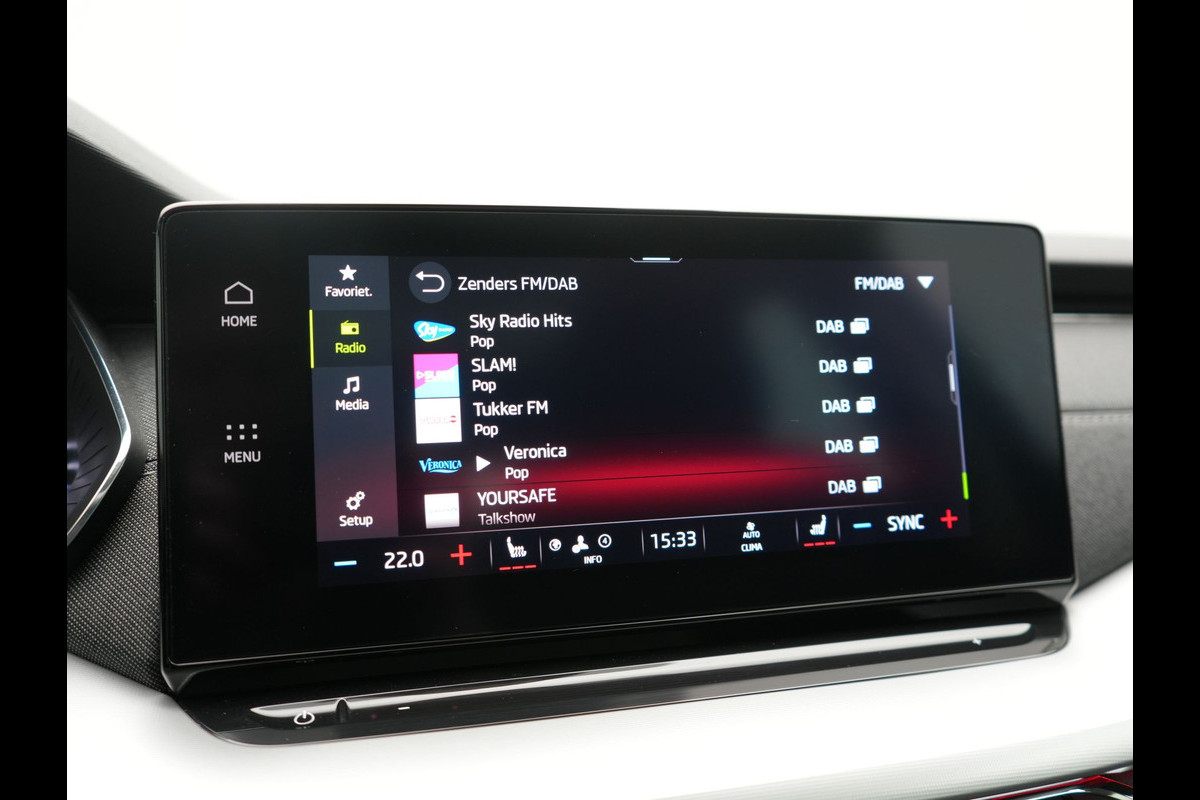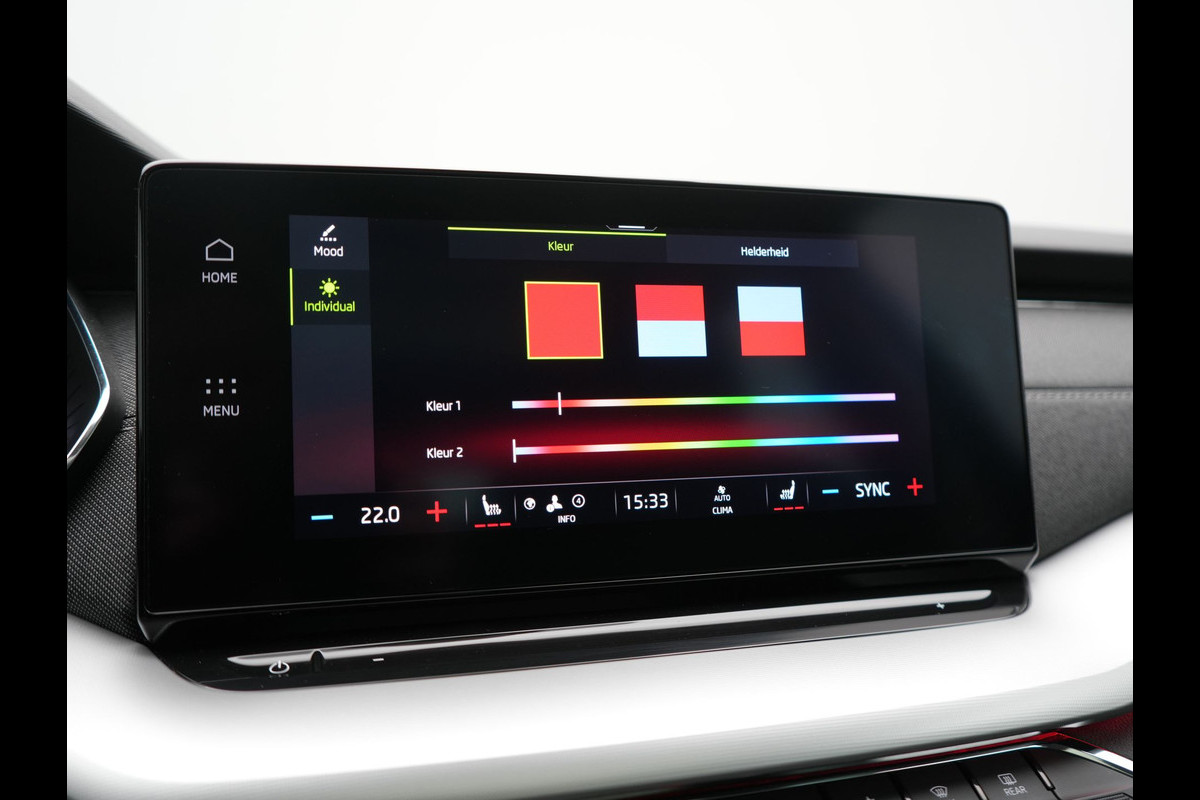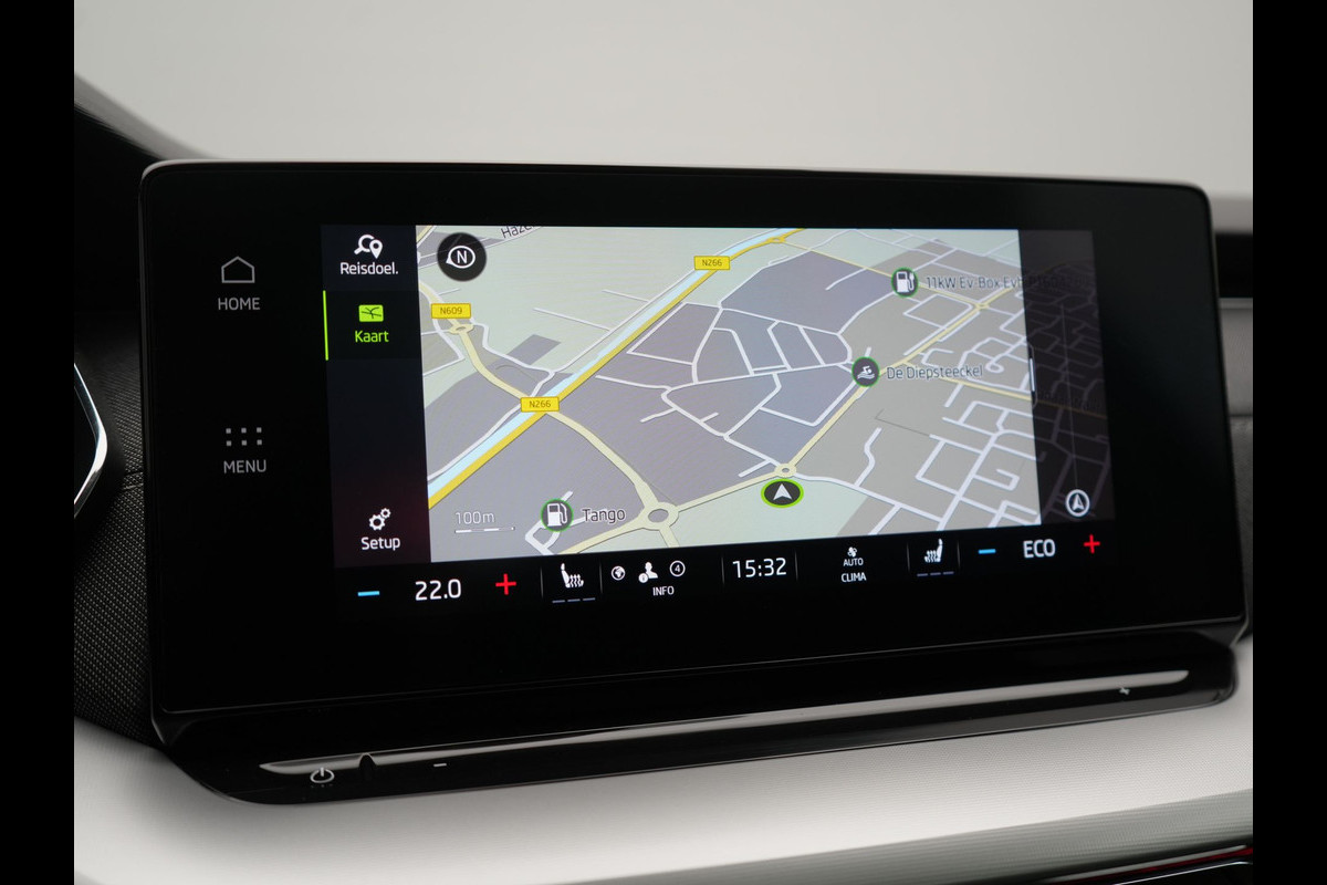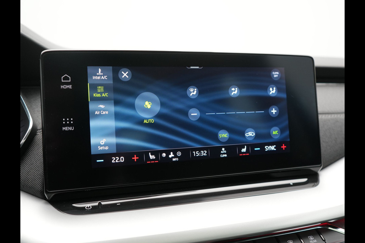 Deze ŠKODA is voorzien van verschillende intelligente veiligheidsvoorzieningen. Ze kijken tijdens het rijden als het ware met u mee, ze signaleren potentieel gevaarlijke situaties en in een aantal gevallen kunnen ze ook ingrijpen. Het Lane-keeping systeem let constant op en waarschuwt of corrigeert als u onoplettend over de lijnen van de rijstrook gaat. Voertuigen of personen buiten uw zicht kunnen gevaar opleveren. De actieve dodehoekdetectie waarschuwt direct. Botsingen met een voorligger gebeuren relatief vaak. De forward collision warning slaat tijdig alarm als dat risico ontstaat, zodat u kunt ingrijpen. In deze ŠKODA vinden we verder een hill hold functie, vermoeidheidsherkenning, autonoom remsysteem en bandenspanningcontrolesysteem.