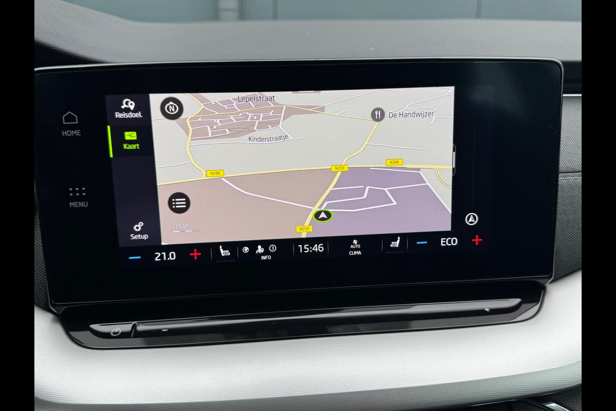 Het digitale dashboard stelt u in staat uw cockpitinterface te personaliseren. Soepel inparkeren in de krapste parkeervakken. De achteruitrijcamera maakt het mogelijk. Ingericht op Connected Services, voor een nog veiligere en comfortabelere rit. Deze Skoda is voorzien van spraakbediening voor het navigatiesysteem en voor het audiosysteem met DAB-ontvangst. Maar u kunt ook de knoppen op het stuur gebruiken. Smartphone opladen onderweg? Dat gaat supergemakkelijk door de draadloze oplaadmogelijkheid voor telefoons. De uitrusting van deze Skoda is met automatische airconditioning, regensensor, cruise control, automatisch dimmende buitenspiegels, isofix-aansluiting en lederen versnellingspook behoorlijk compleet.