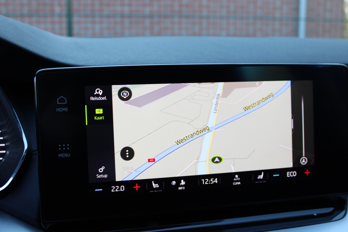 De auto is rijk uitgerust met onder andere: Origineel Škoda navigatie- en multimediasysteem,Apple CarPlay (draadloos),Draadloze telefoonoplader,Virtual Cockpit,Adaptieve cruise control,Climate control,Stoelverwarming vóór én achter,Stuurwielverwarming,Multifunctioneel stuurwiel,LED-verlichting en LED-koplampen,Elektrisch inklapbare buitenspiegels,Keyless entry,Parkeersensoren voor en achter, achteruitrijcamera en automatische inparkeerhulp,Lichtmetalen velgen