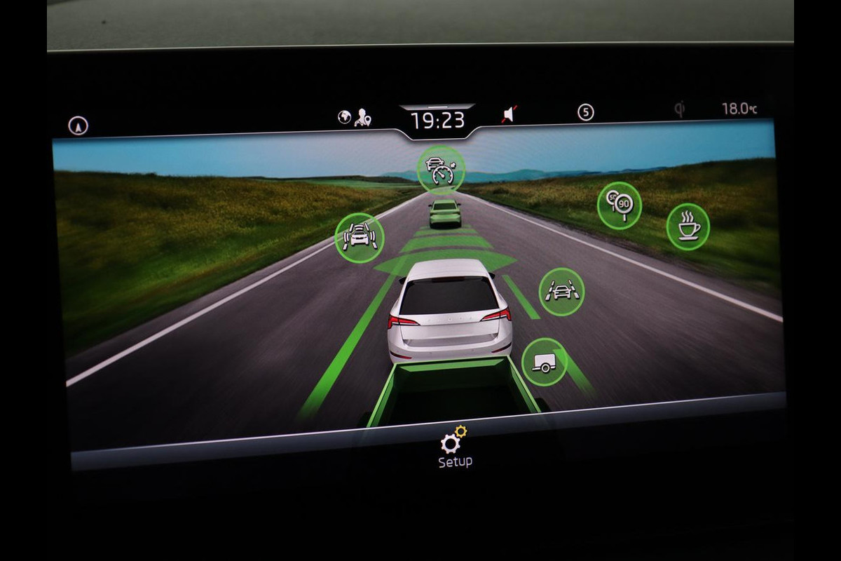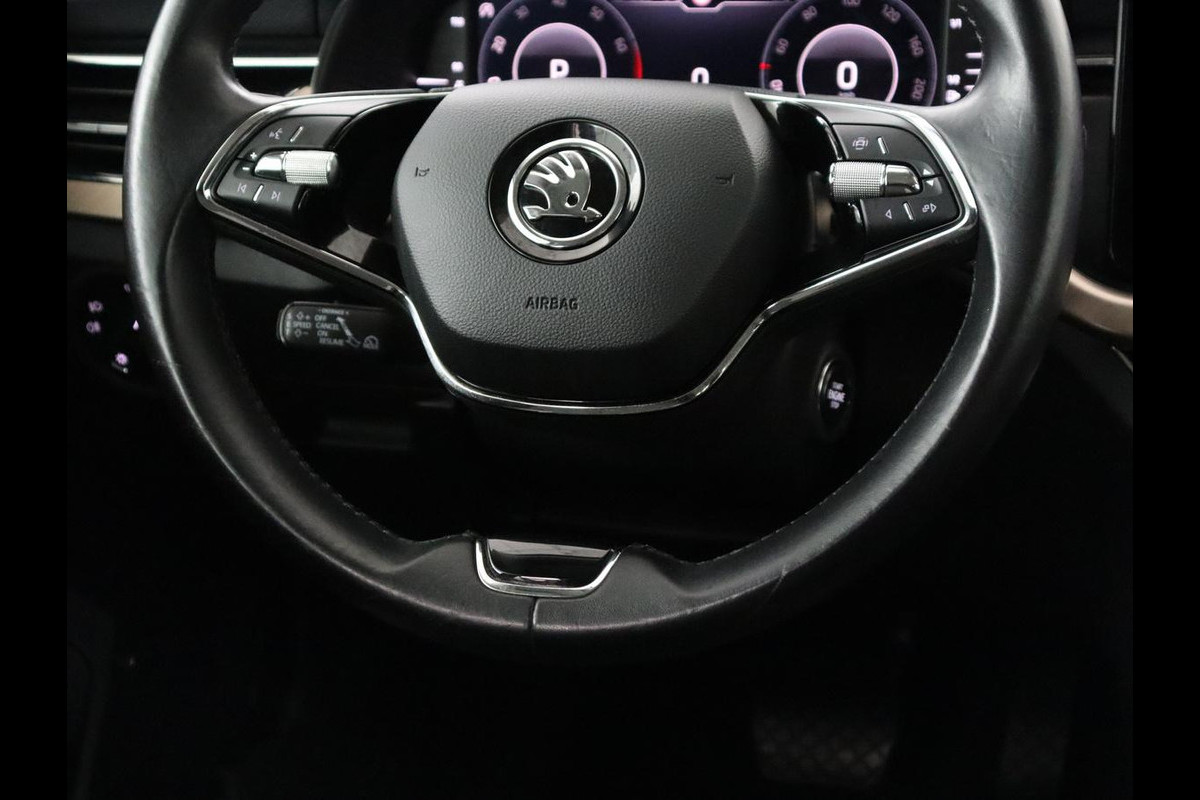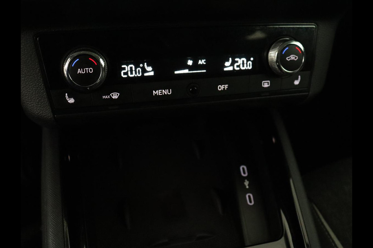 Omdat goed geïnformeerd rijden tegenwoordig om veel meer draait dan alleen snelheid en brandstofpeil, laat het digitale dashboard alle functies zien die u nodig heeft. Adaptive cruise control is veilig en comfortabel. De snelheidsregelaar houdt automatisch afstand tot het voertuig dat voor u rijdt. Vergeten af te sluiten? Bandenspanning onvoldoende? De speciale app geeft u direct een seintje met behulp van Connected Services. U kunt het audio-installatiesysteem met DAB-ontvangst en het navigatiesysteem met harde schijf bedienen met de knoppen op het stuur of zelf met uw stem. Kabelkluwens en stekkerslingers van smartphones zijn hier niet aan de orde. De draadloze oplaadmogelijkheid voor telefoons maakt opladen strak, simpel en snel. Met automatische airconditioning, parkeersensoren achter, regensensor, automatisch dimmende binnenspiegel, lederen stuur en centrale deurvergrendeling met afstandsbediening is deze Skoda helemaal compleet.