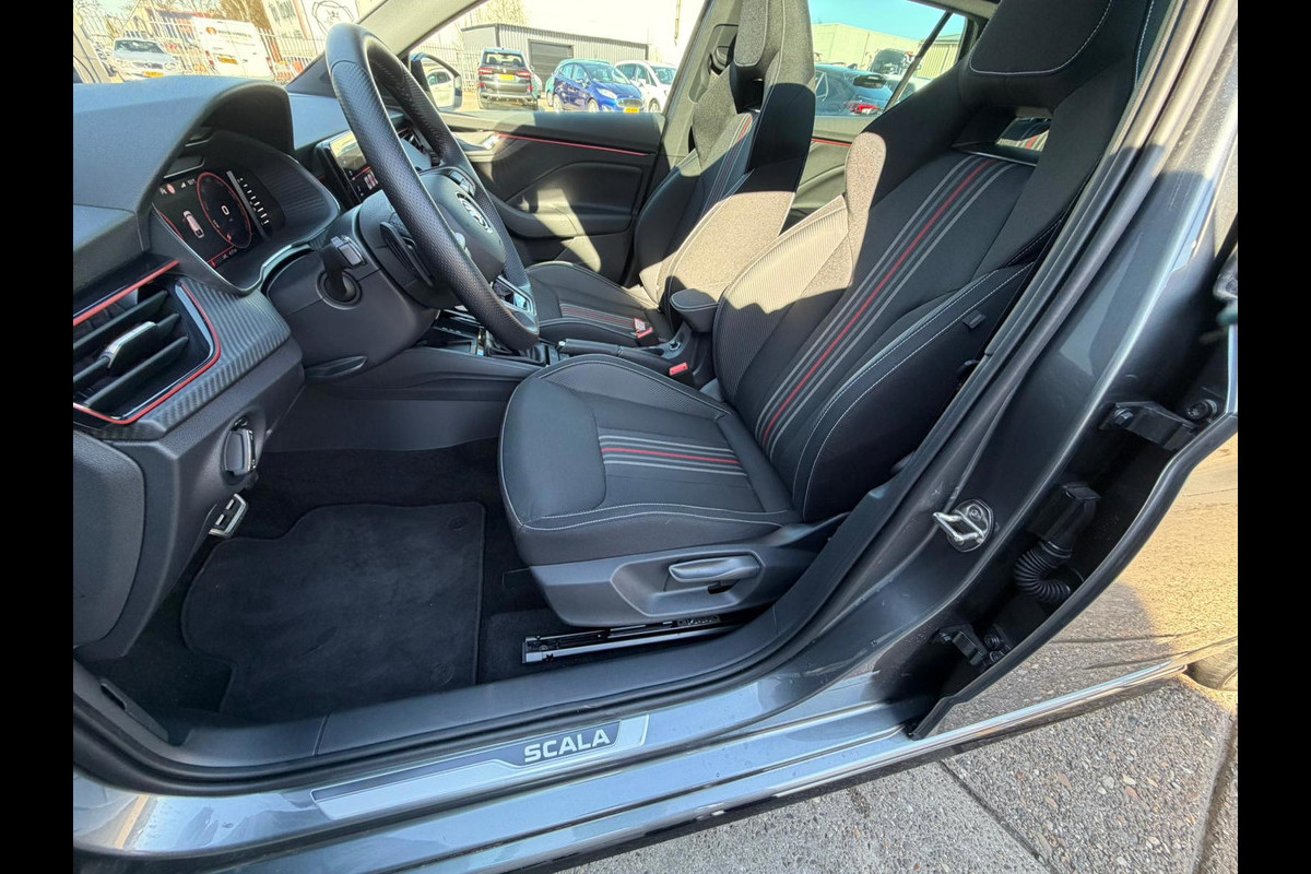 Deze auto nodigt u uit om plaats te nemen achter het sportstuur en onmiddellijk de weg op te gaan. De aandrijving van deze Skoda wordt verzorgd door een driecilinder motor en een automatische transmissie. Topklasse: daar hoort leren bekleding absoluut bij. De verwarmbare voorstoelen benadrukken nog maar eens dat we hier te maken hebben met een regelrechte verwenauto voor bestuurder en bijrijder. De sportstoelen geven het interieur een super strakke look. Een praktische extra is de elektrisch bedienbare achterklep die opent en sluit met een druk op de knop. Onderweg heeft u extra veel te zien dankzij het glazen panoramadak. Bij deze Skoda Scala is aan alles gedacht, tot en met een verwarmd stuurwiel aan toe. Bij de zeer complete uitrusting van deze auto behoren ook 17 inch lichtmetalen velgen, LED-koplampen, warmtewerend glas, zwarte hemelbekleding, dakspoiler en in delen neerklapbare achterbank.