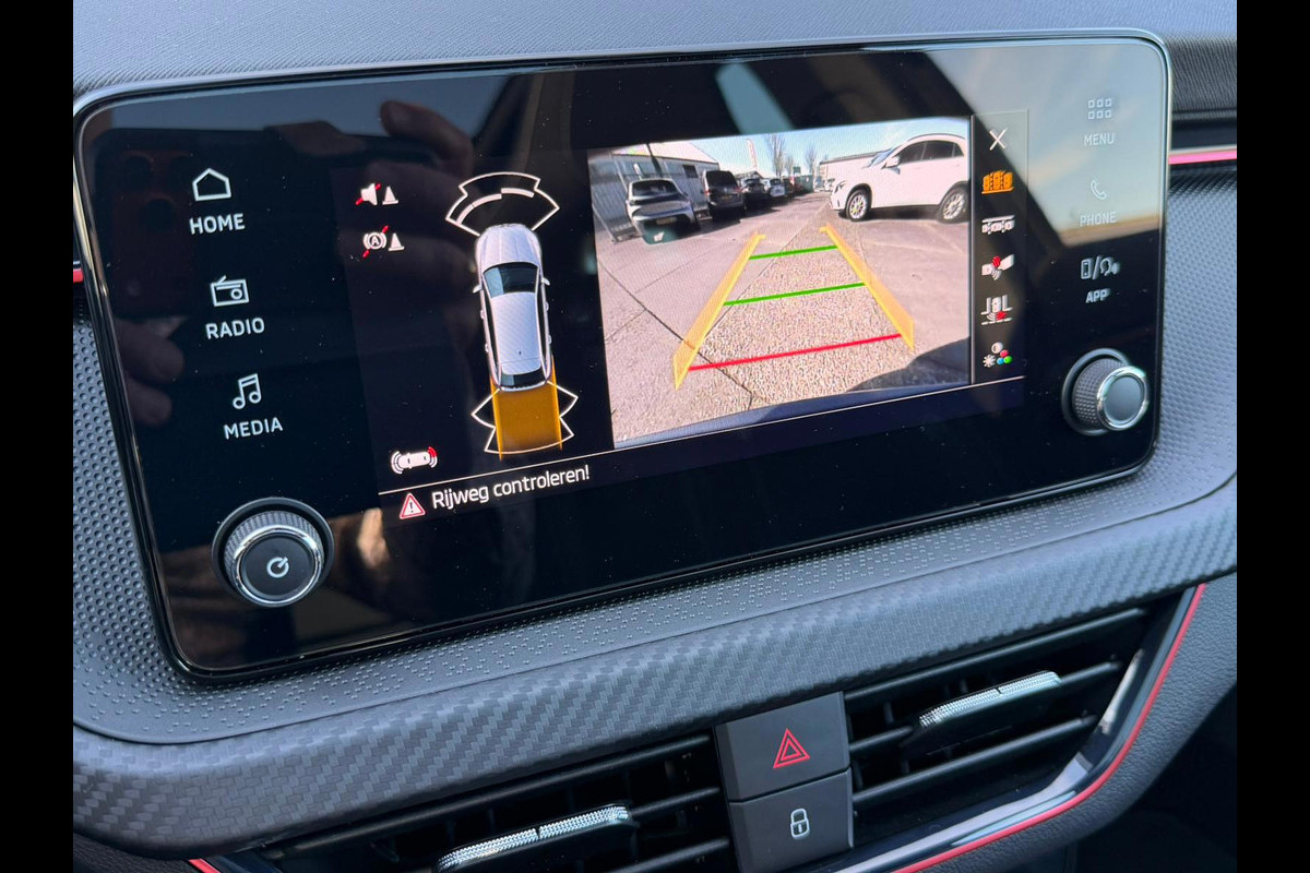 Deze Skoda is voorzien van verschillende intelligente veiligheidsvoorzieningen. Ze kijken tijdens het rijden als het ware met u mee, ze signaleren potentieel gevaarlijke situaties en in een aantal gevallen kunnen ze ook ingrijpen. Onderweg zorgt verkeersborddetectie ervoor dat u geen waarschuwingsbord mist. Het Lane-keeping systeem garandeert dat u zich niet onverhoeds buiten de lijnen van de rijstrook begeeft. Onbedoeld bumperkleven is er niet bij, dankzij de forward collision warning. Die waarschuwt direct als een botsrisico met uw voorligger dreigt. Verder is deze auto uitgerust met dodehoekdetectie, accident avoidance system, hill hold functie, Abs - anti blokkeer systeem met brake assistant, vermoeidheidsherkenning en bandenspanningcontrolesysteem.