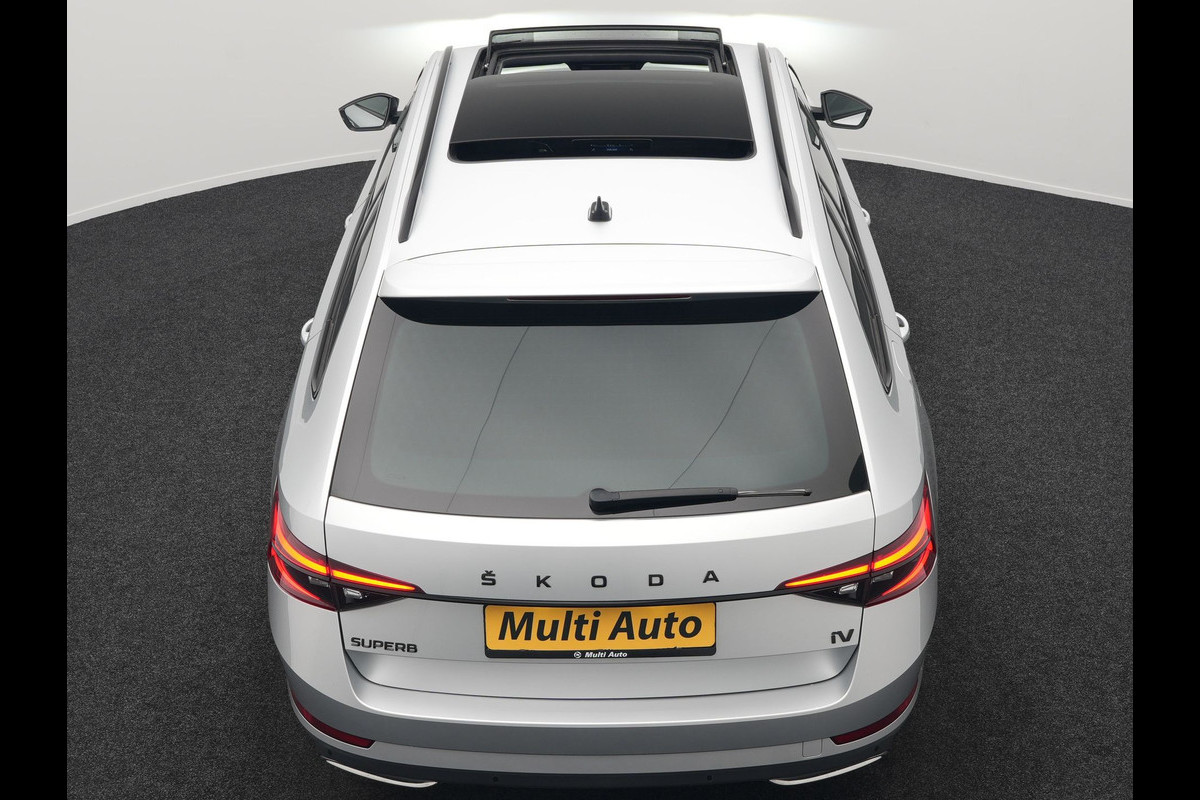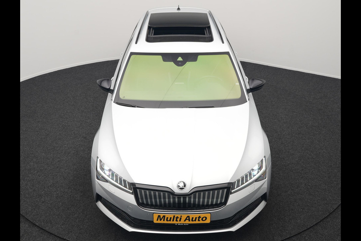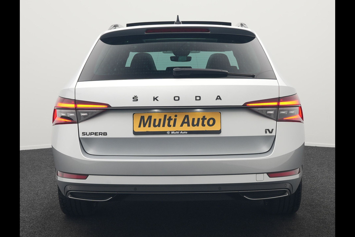 ŠKODA Superb Combi 1.4 TSI iV Sportline Business Plug In Hybrid 218pk Dealer O.H PHEV | Trekhaak Af Fabriek | Panodak | Adaptive Cruise | Alcantara Sportstoelen Memory & Verwarmd | Sfeerverlichting | Apple Carplay | Stuur Verwarmd | Virtual | Keyless | DAB | 19"L.M |