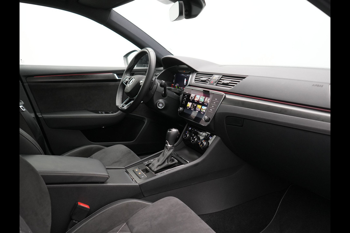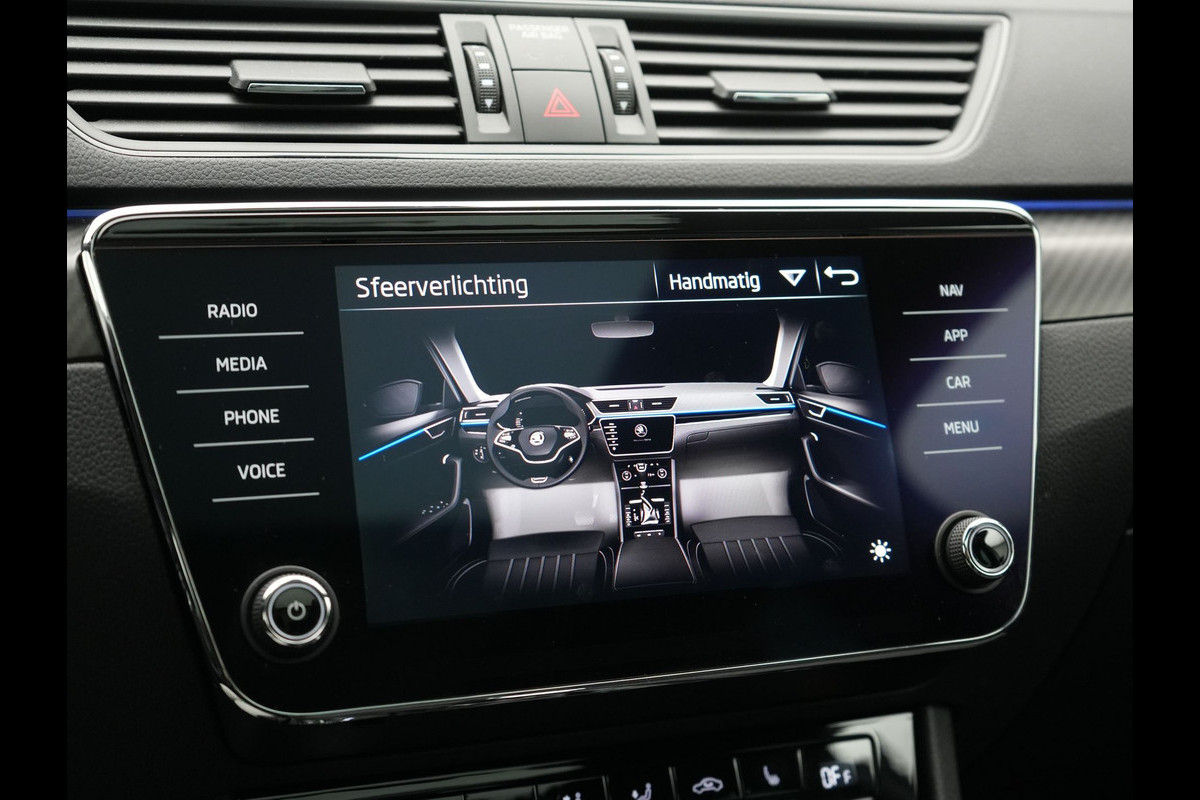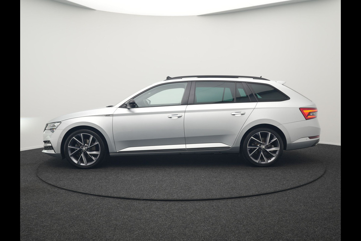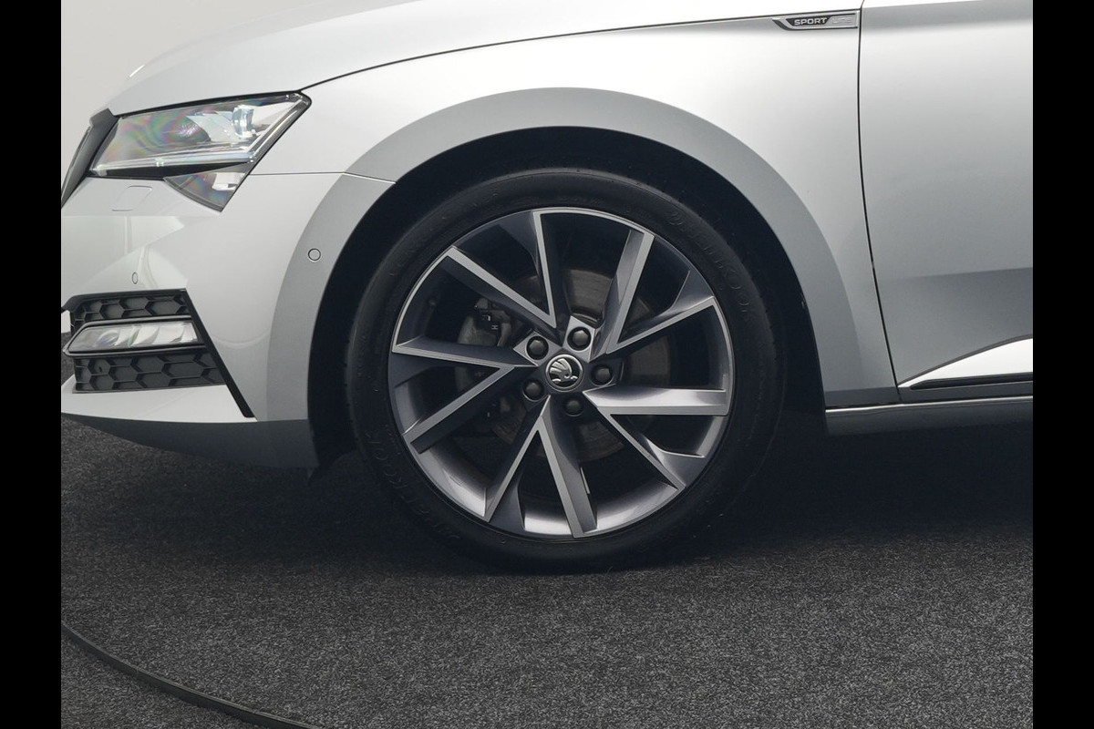 ŠKODA Superb Combi 1.4 TSI iV Sportline Business Plug In Hybrid 218pk Dealer O.H PHEV | Trekhaak Af Fabriek | Panodak | Adaptive Cruise | Alcantara Sportstoelen Memory & Verwarmd | Sfeerverlichting | Apple Carplay | Stuur Verwarmd | Virtual | Keyless | DAB | 19"L.M |