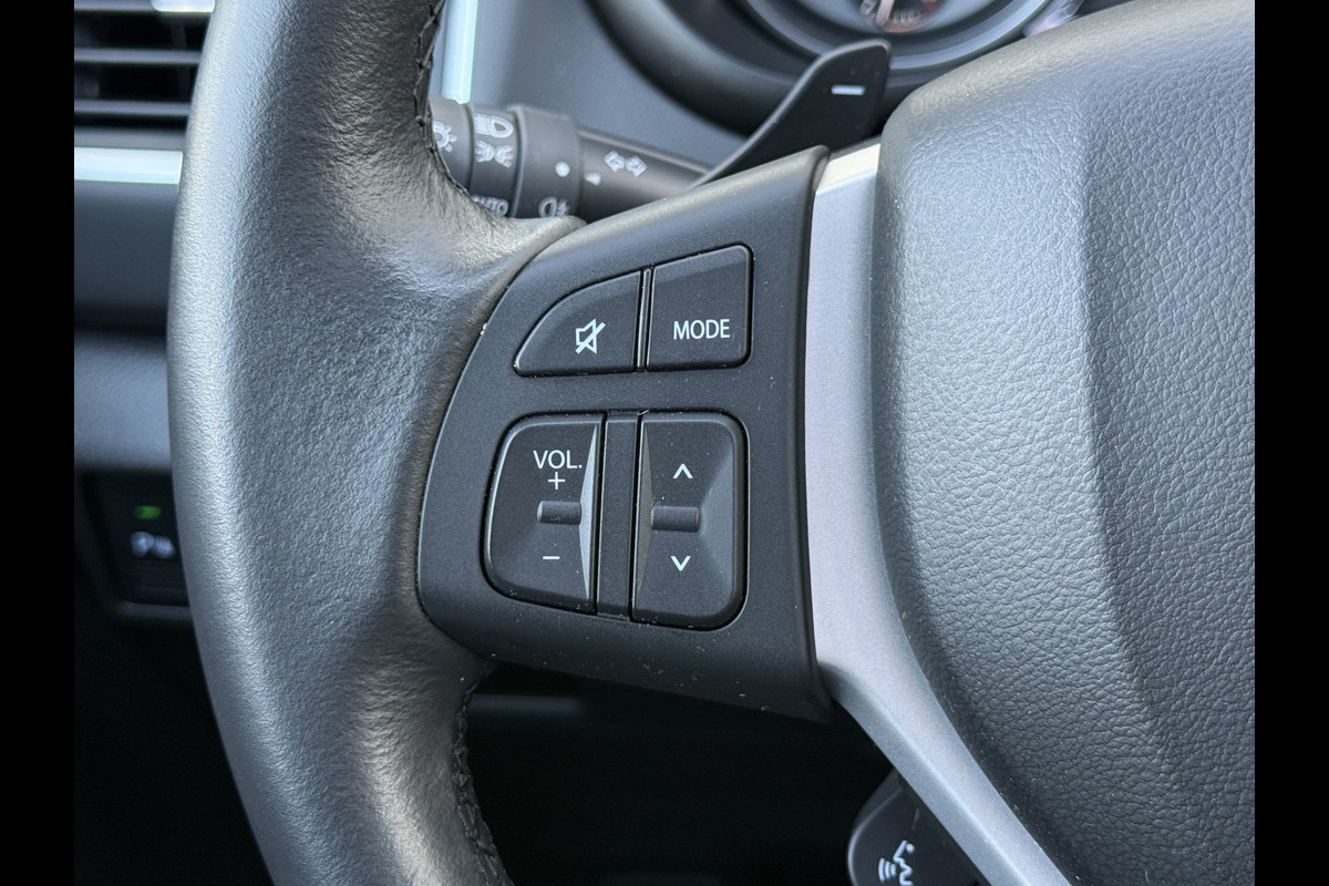 De functie van de 360 graden camera in deze auto is om u een totaaloverzicht van de omgeving te geven, ongeacht hoe smal de straat of parkeerplek is. Met adaptive cruise control houdt de auto zelfstandig afstand tot uw voorligger. Een veiligheidsverhogende optie waarmee u comfortabel onderweg bent. De auto's van vandaag rijden niet alleen subliem, maar luisteren ook goed. Via een speciale app kunt u overal diverse functies controleren en de status van de auto inzien. Met de knoppen op het stuur regelt u het audiosysteem en het full map navigatiesysteem, terwijl u uw blik op de weg gericht houdt. De audio-installatie biedt daarbij glasheldere ontvangst dankzij DAB-ontvangst. Omdat u nu eenmaal niet overal ogen heeft, is deze Suzuki S-Cross voorzien van een achteropkomend verkeer waarschuwing die registreert wanneer de afstand tot uw achterligger te krap is. De uitrusting van deze Suzuki is met electronic climate control, schakelpaddles aan het stuur, regensensor, keyless entry, usb-aansluiting en centrale deurvergrendeling met afstandsbediening behoorlijk compleet.