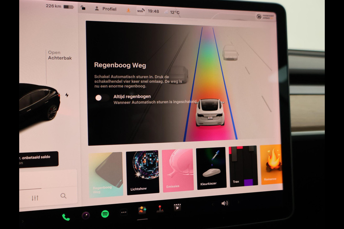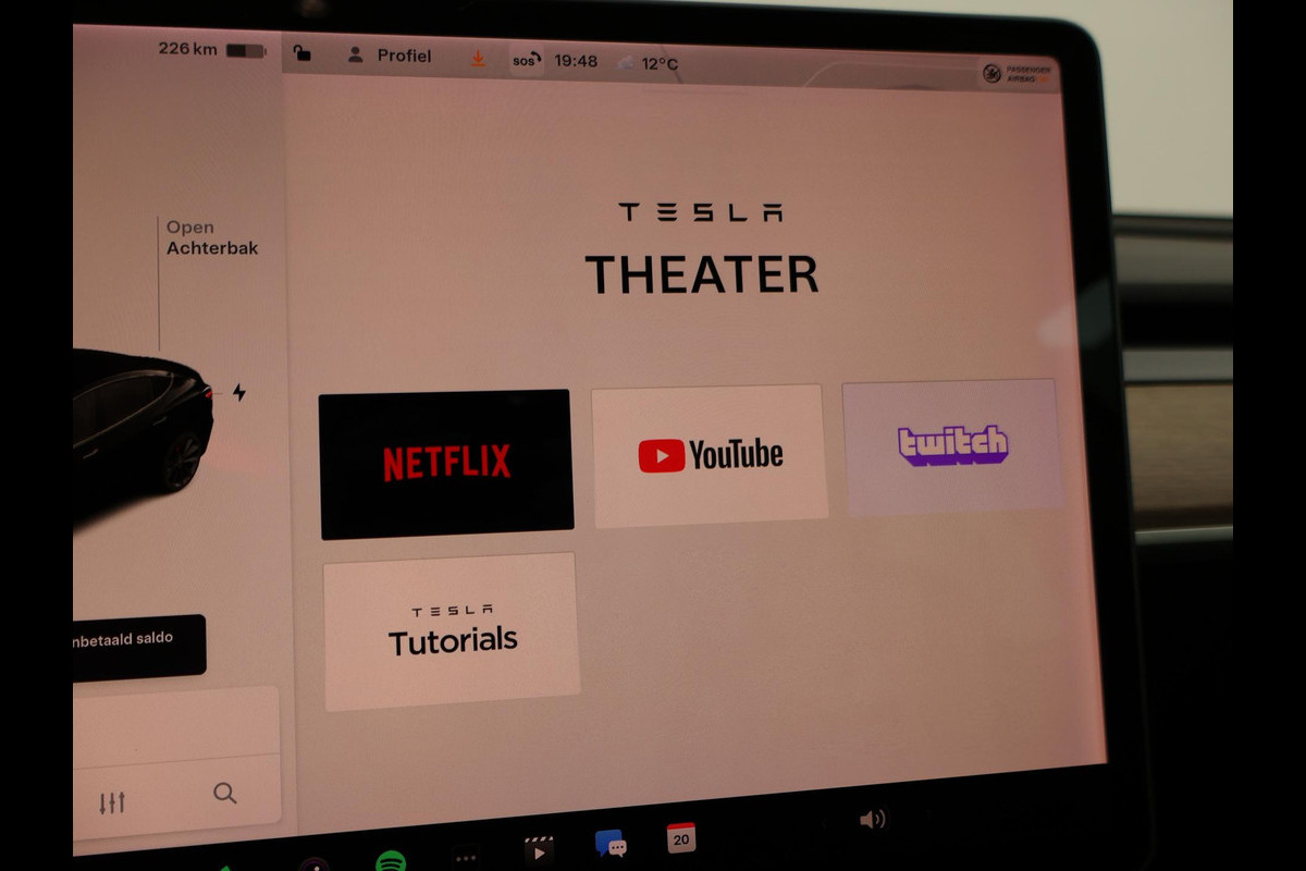 Bijzondere Tesla Model 3: een PERFORMANCE uitvoering met 341 kw / 463 PK vermogen AWD Dual-Motor met een RDW nieuwprijs van 65.380 euro, Actieradius WLTP op kenteken bij de RDW: 530 km! - 20 inch lichtmetalen zwarte velgen, Rode remklauwen, Panoramadak, Autopilot, Theater apps zoals Netflix en Youtube, Webbrowser Internet, Achterspoiler, Zwart volledig leder interieur met elektrische stoelverstelling + stoelverwarming voor en achterin, Achteruitrijcamera + zij-camera's, Full LED koplampen, LED achterlichten, Navigatie met satellietbeelden, Bluetooth met audiostreaming, Digitale Radio DAB+ en radio apps, Diverse spelletjes en entertainment zoals open haard, tekenen en lichtshow. Daarnaast apps al Spotify, Caraoke en TuneIn radio, Wi-Fi, App connect met Tesla app op mobiel, Elektrisch verstelbaar stuurwiel, Rijstrook waarschuwing, Noodremsysteem (bots preventie), Dodehoek assistentie met dodehoek camera's die inschakelen bij richting aangeven, Elektrisch inklapbare buitenspiegels, Mat houtinleg dashboard.