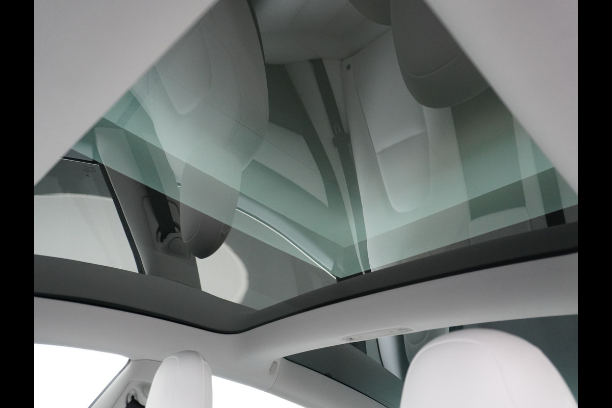 Tesla Model 3 RWD+ 60kWh 325PK LFP Licht Interieur 19"Lmv FSD-3 Comp. AutoPilot Leder PanoDak Adaptive-Cruise Lmv Camera's Elektr.-Stuur+Stoel Navi LED Comfortstoelen ACC DAB Keyless en Voorverwarmen interieur via App One-Pedal-Drive In zeer nette staat! Origineel Nederlandse auto tot 11kw laden thuis! Garantie Accu tot 30-6-2029 max 160.000km