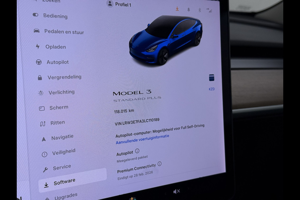 Tesla Model 3 RWD SR plus 325PK LFP Accu Trekhaak Lmv 18" AutoPilot Leder Panoramadak Adaptive-Cruise Camera's Elektr.-Stuur+Stoelen+Spiegels+ Navi LED DAB Voorverwarmen Keyless One-Pedal-Drive SOH 88% 1e Eigenaar Origineel Nederlandse Auto Fabrieksgarantie op Accu en Motor tot 15-12-2028/160.000km