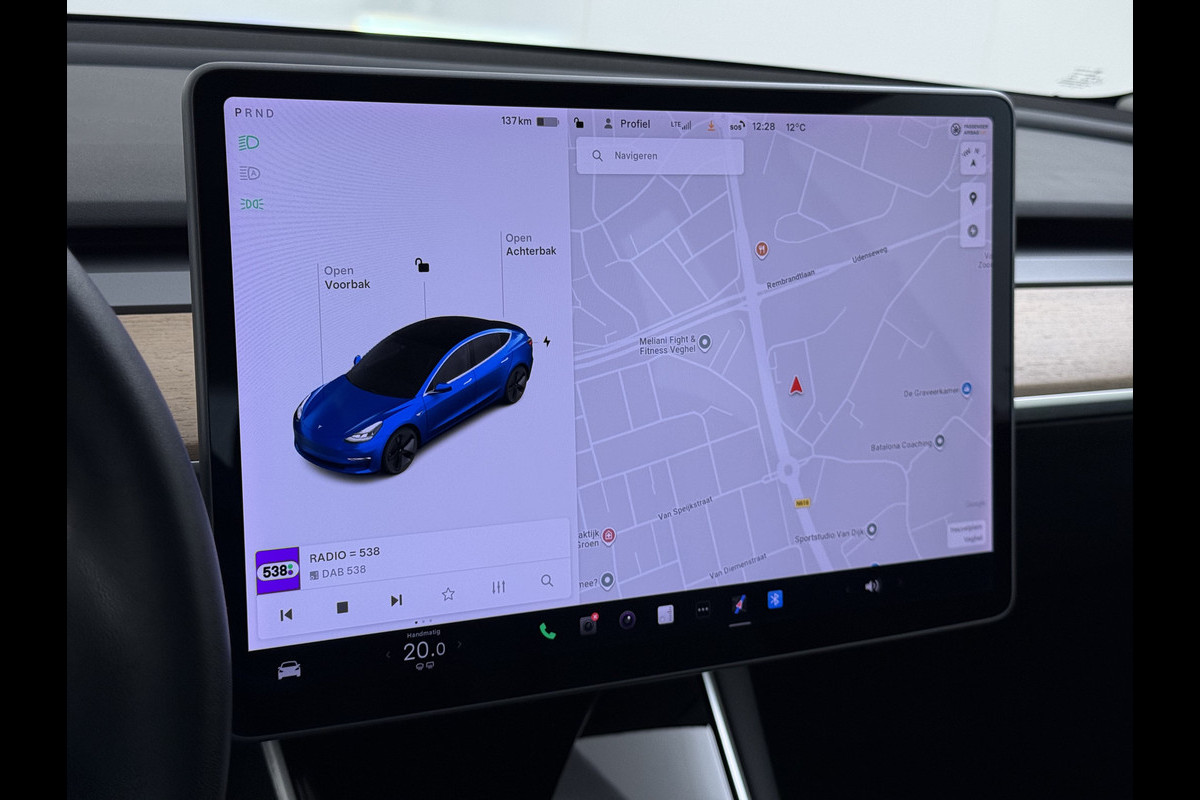 Kijk naar de zelfbewuste vormgeving. Ontdek de vernieuwende technologie aan boord. De Tesla Model 3 is een unieke elektrische auto. De techniek van deze auto is radicaal anders dan u gewend bent. U rijdt zacht zoemend naar uw bestemming, de actieradius van de accu's is ruimschoots voldoende voor de meeste dagelijkse ritten. De krachtige motor geeft deze Tesla uitstekende prestaties. Topklasse: daar hoort leren bekleding absoluut bij. Zit u goed? De stoelen zijn eenvoudig instelbaar dankzij de elektrische bediening met geheugen. Zicht, licht en toch dicht! Een geweldige rijervaring met het glazen panoramadak. In deze auto profiteert u onder andere ook van: elektrisch verstelbare stuurkolom, 18 inch lichtmetalen velgen, LED-dagrijverlichting, getint glas, in delen neerklapbare achterbank en LED-achterlichten.