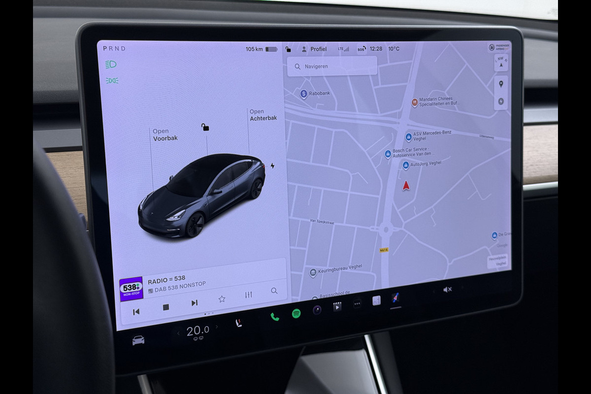 Zoals u mag verwachten van deze Tesla Model 3 is hij uitgerust met een reeks aan actieve veiligheidssystemen. Deze Tesla Model 3 blijft altijd alert. Zo wordt gebruik gemaakt van forward collision warning. Bij het mogelijke risico op een aanrijding met een voertuig voor u, slaat het systeem alarm. Lane assist waarschuwt als u onbedoeld buiten uw rijstrook dreigt te raken. In deze Tesla vinden we verder een dodehoekdetectie en autonoom remsysteem.