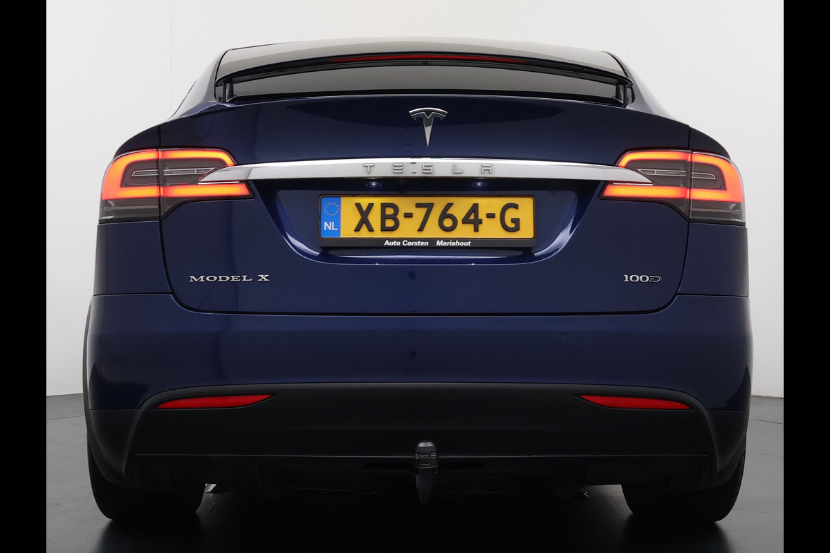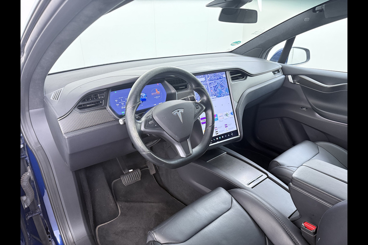 Tesla Model X 100D 20" Trekhaak Leder Luchtvering Adaptive Cruise AutoPilot Panoramadak Vleugeldeuren Camera's Elektr.Stoelen/Stuur+Verwarmd+G Adaptieve koplampen Lmv 20" Led Elektr.-Achterklep Bordherkenning Verwarmde Sproeiers-bladen Carbon Sentry Mode Valet mode 2250 kg Trekvermogen! € 124.700 nieuw !