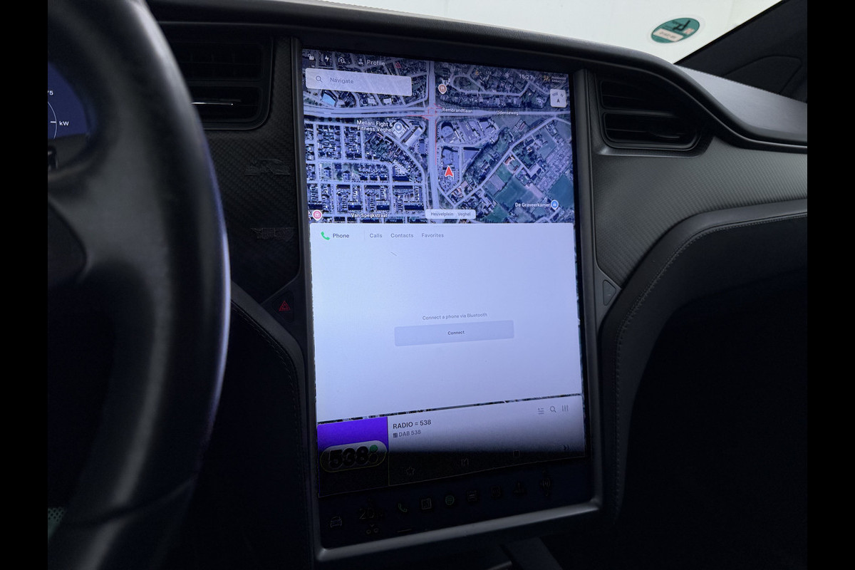 Zoals u mag verwachten van deze Tesla Model X is hij uitgerust met een reeks aan actieve veiligheidssystemen. De actuele snelheidslimiet, een inhaalverbod en andere verkeersborden; de verkeersborddetectie ondersteunt u tijdens elke rit. Het Lane-keeping systeem let constant op en waarschuwt of corrigeert als u onoplettend over de lijnen van de rijstrook gaat. In deze Tesla vinden we verder een dodehoekdetectie, hill hold functie, autonoom remsysteem en bandenspanningcontrolesysteem.