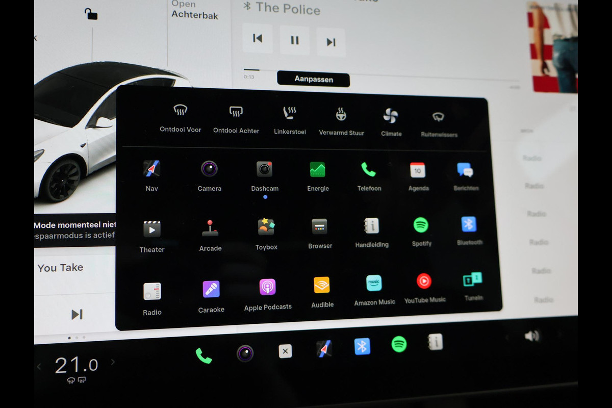 Origineel Nederlandse en 1e eigenaar auto van 12-2021, RDW nieuwprijs 70.100 euro, Long Range AWD uitvoering, 351 PK vermogen, BTW verrekenbaar, Exterieurkleur wit met 20 inch zwarte velgen, Enhanced Autopilot (twv 3800 euro meerprijs vanaf fabriek), Zwart leder interieur met stoelverwarming en stuurwielverwarming, Achteruitrijcamera en zij-camera's, Panoramadak, Privacy glass, Navigatie, Spotify, Bluetooth, Adaptive cruise control, Climate control, Elektrische stoelverstelling, Digitale radio, Mat afgewerkt houtinleg.