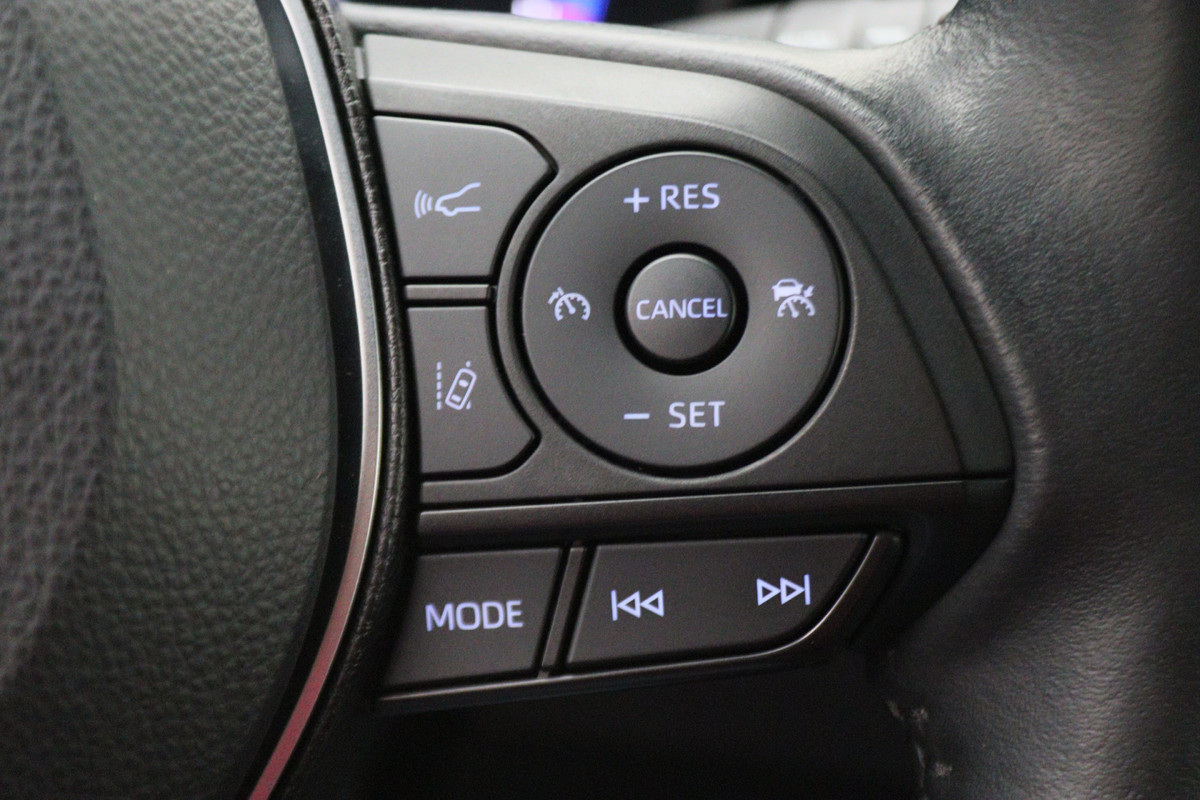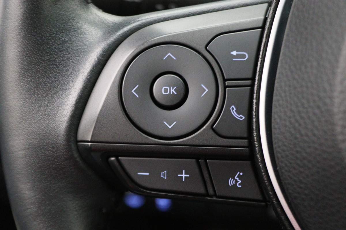 U ziet geen paaltje meer over het hoofd dankzij de achteruitrijcamera. Adaptive cruise control is een comfortabele en veilige optie. Het systeem reguleert de snelheid en houdt automatisch afstand tot uw voorligger. Deze Toyota is voorzien van spraakbediening voor het full map navigatiesysteem en voor het audio-installatiesysteem met DAB-ontvangst. Maar u kunt ook de knoppen op het stuur gebruiken. De auto is voorzien van een draadloze telefoonlader, zodat uw smartphone tijdens de rit 100% wordt. Het spreekt voor zich dat een auto als deze ook van automatische airconditioning is voorzien. Wat u ook in deze auto kunt vinden zijn regensensor, keyless entry, buitentemperatuurmeter, automatisch dimmende binnenspiegel, isofix-aansluiting en usb-aansluiting.