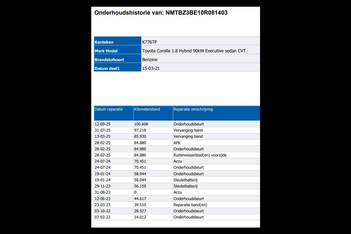 Onderhoudsboekjes: Aanwezig (dealer onderhouden)