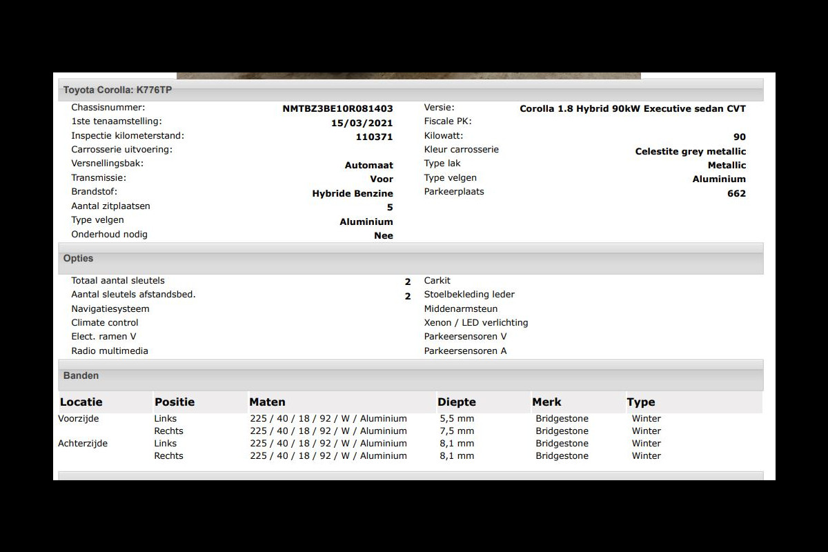 Het kan echter voorkomen dat uit de automatische voertuiginformatie een optie of accessoire naar voren komt die helaas toch niet op de auto aanwezig is.