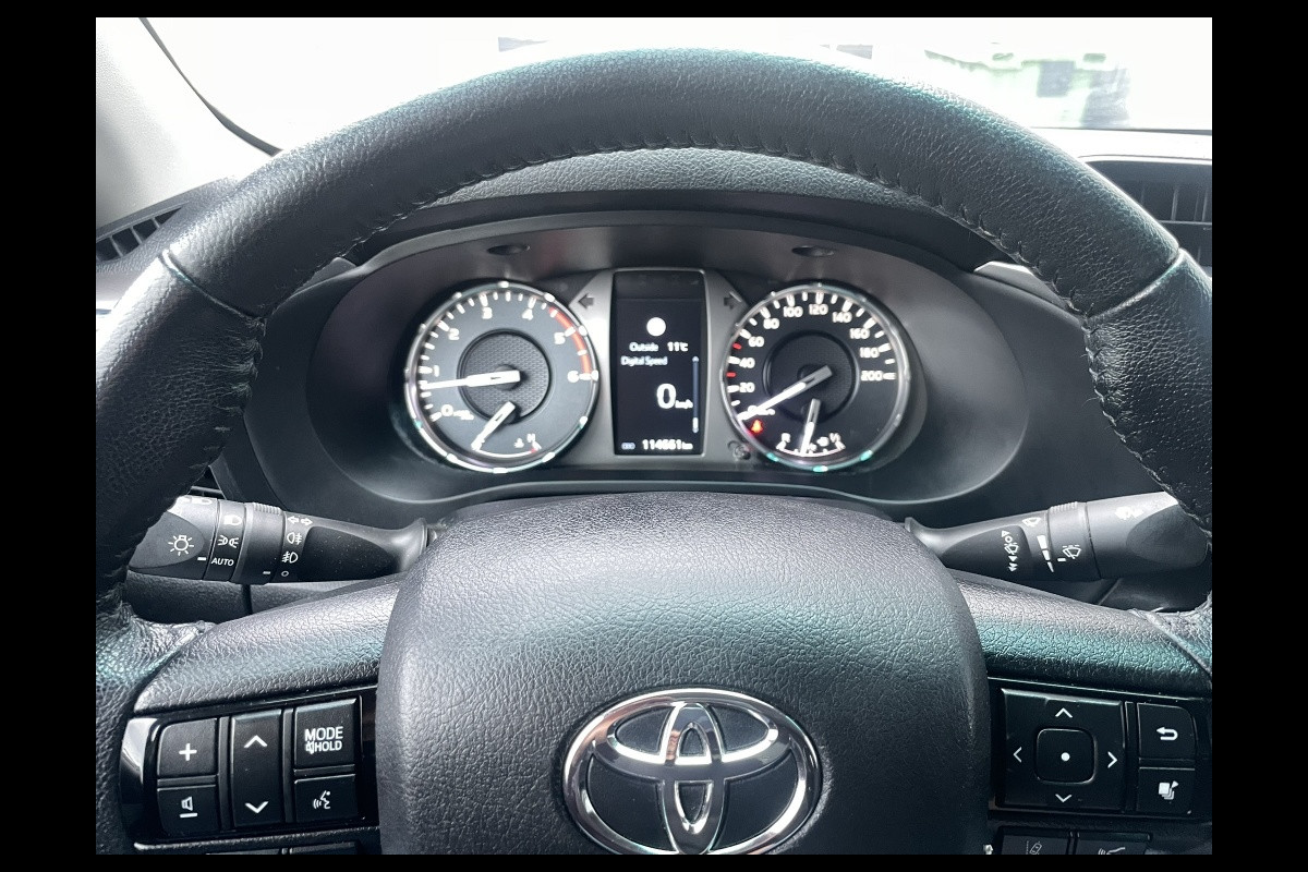 Deze Toyota HiLux 2.4 D-4D 150PK 4WD is voorzien van airco (ECC), adaptive cruise control, carplay, achteruitrijcamera, trekhaak (3500 kg).