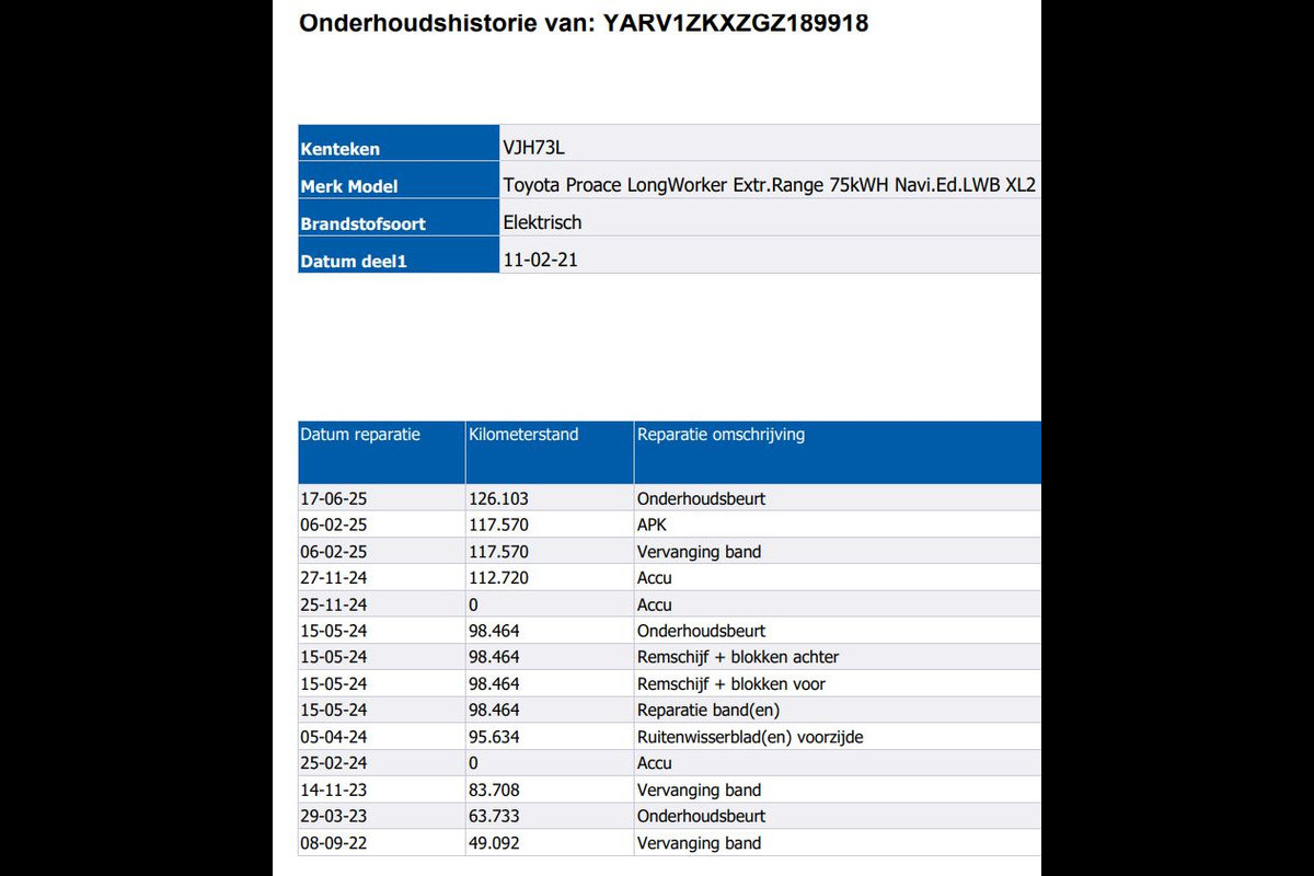 Toyota PROACE Electric Worker L2 Extra Range 75KWh / SOH 90% / 3Pers. / Navigatie / Airco / Bedrijfswagen inrichting / Apk 02-2027