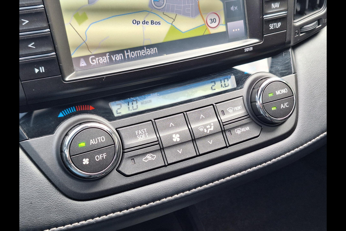 Een onopvallend paaltje of een overstekend kind achter de auto brengt risico's met zich mee. Gelukkig laat de parkeerhulp met achteruitrijcamera feilloos zien of alles veilig is. Als u de adaptive cruise control inschakelt, regelt de auto zelf de snelheid en de afstand tot de auto voor u. Nooit meer te warm of te koud. De automatische airconditioning zorgt altijd voor de temperatuur die u kiest. De automatisch inschakelbare verlichting en regensensor zorgen dat onderweg automatisch de verlichting en de ruitenwissers worden ingeschakeld. Daarmee nemen ze u veel werk uit handen. Een handige optie is de keyless entry: de Toyota RAV4 opent automatisch alle sloten zodra u dichtbij bent. Deze Toyota is voorzien van audiobediening op het stuur, DAB+ tuner, buitentemperatuurmeter, automatisch dimmende binnenspiegel, isofix-aansluiting en centrale deurvergrendeling met afstandsbediening.