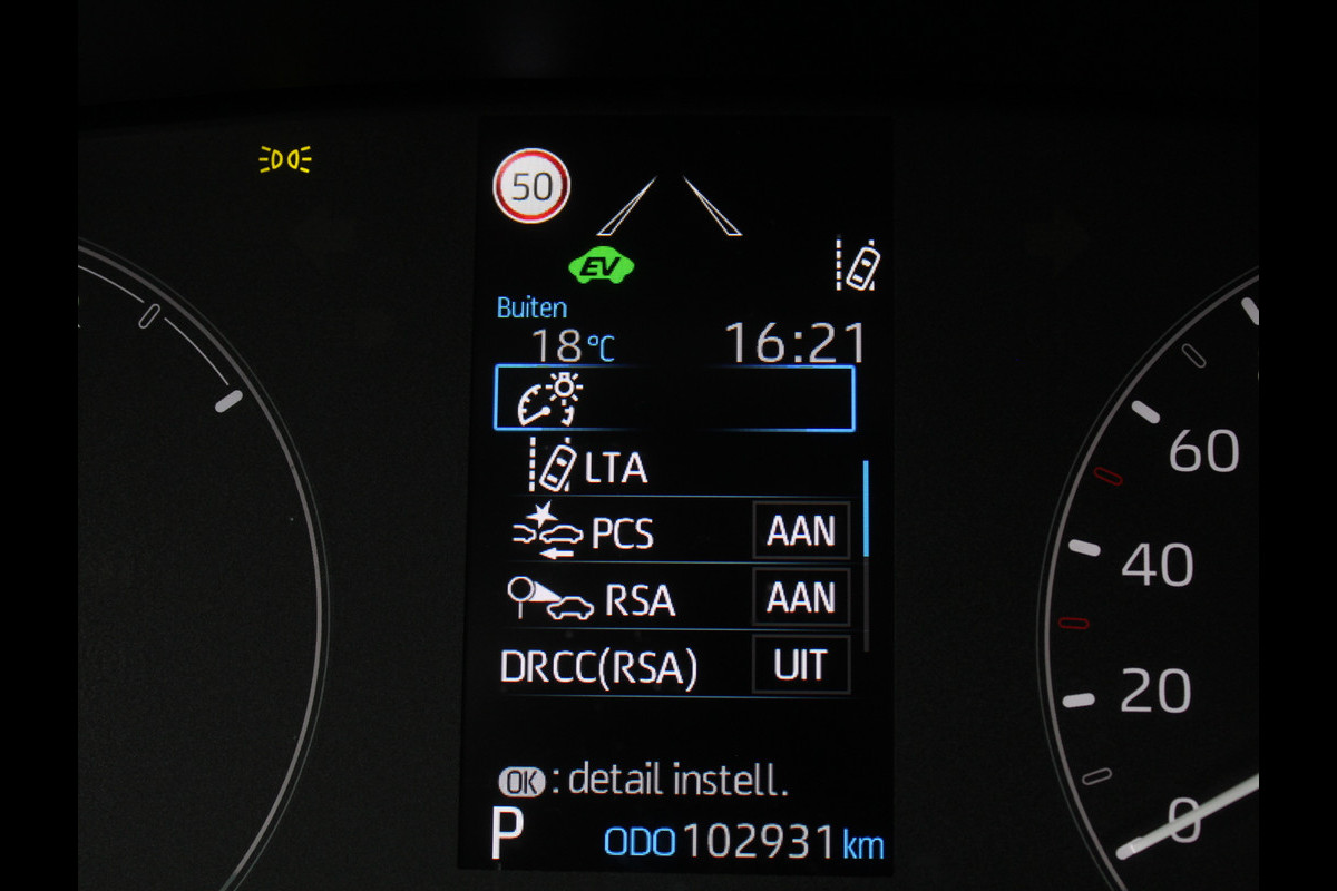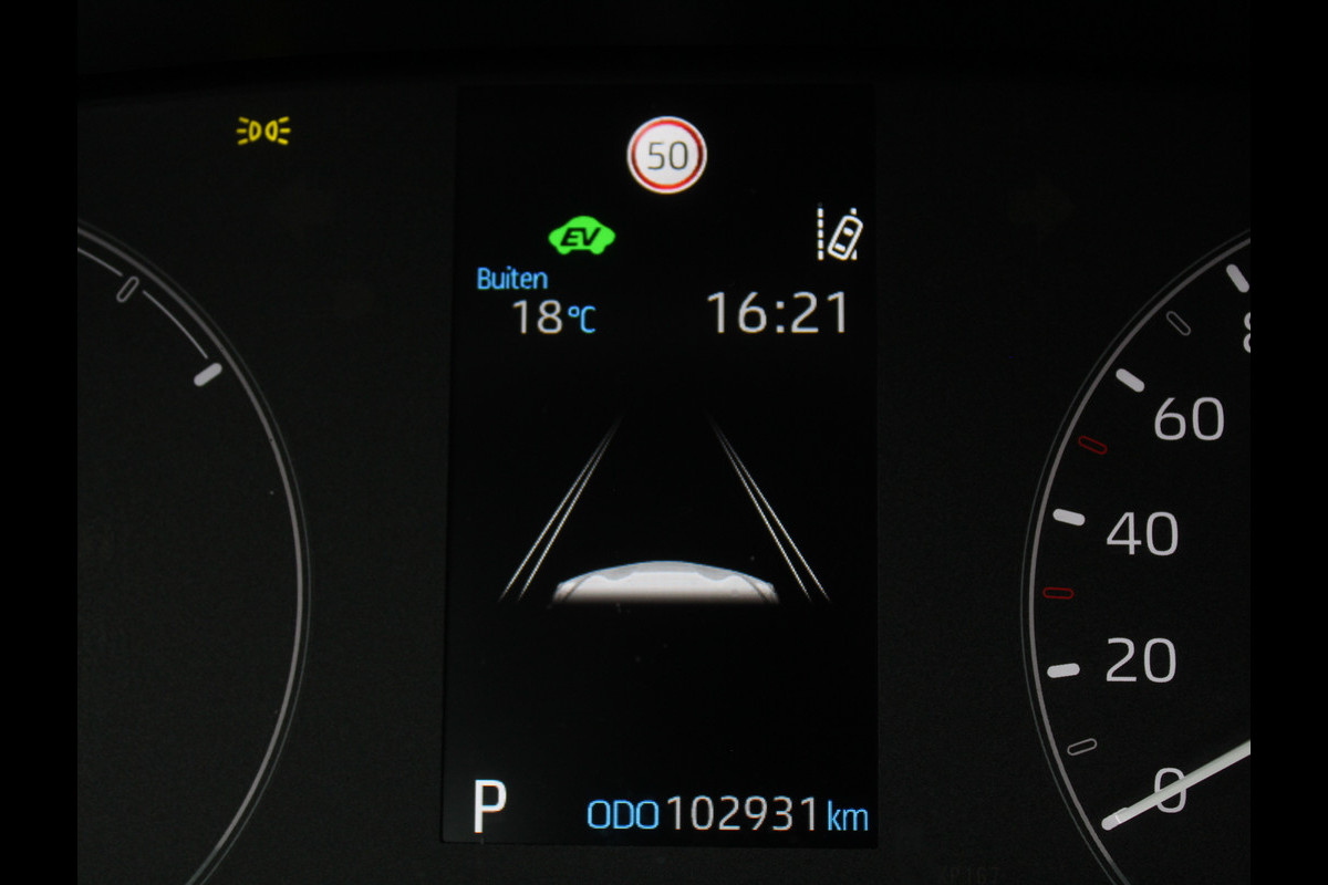 Deze Toyota biedt u niet alleen comfort en rijplezier, maar ook veiligheid. Actieve veiligheidssystemen houden voor u de weg in de gaten en reageren op onvoorziene situaties voordat u dat kunt. Een belangrijke bijdrage aan de veiligheid onderweg levert de verkeersbord-detectie in deze Toyota. Het Lane-keeping systeem registreert permanent of u binnen de lijnen van de rijstrook blijft; dwaalt u onbedoeld af, dan waarschuwt het systeem en corrigeert de koers. Het forward collision warning-systeem berekent via een sensor de afstand tot het verkeer vóór u en komt in actie als er gevaar bestaat van een botsing. De auto is ook uitgerust met hill hold functie, autonoom remsysteem en bandenspanningcontrolesysteem.