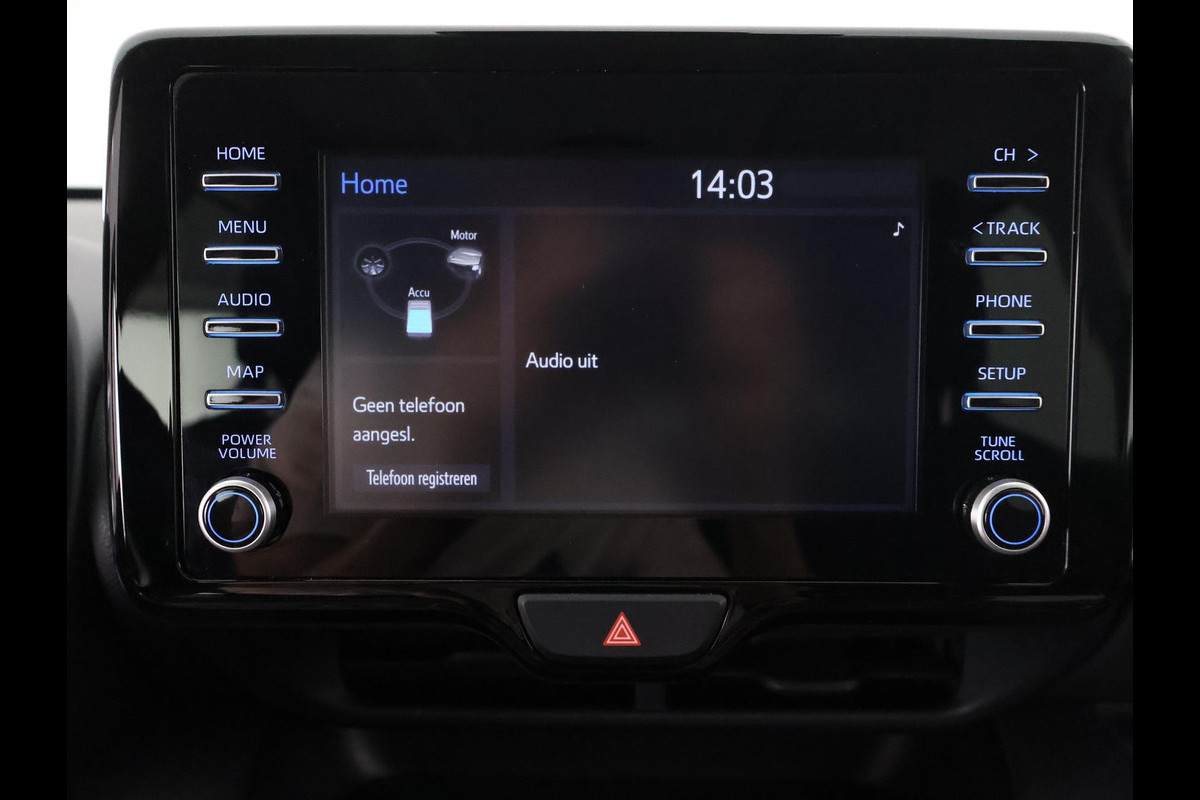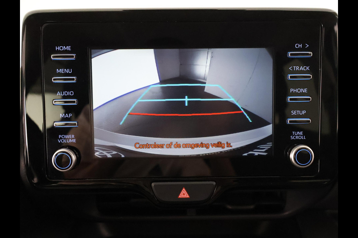 Ook achter de auto geen verrassingen bij het inparkeren. Daarvoor zorgt de achteruitrijcamera. Adaptive cruise control houdt de ingestelde snelheid vast en houdt automatisch afstand tot uw voorligger. Met uw smartphone maakt u overal contact met de auto. Remote services geven direct inzicht in uiteenlopende functies en zijn op afstand te activeren. Deze Toyota Yaris denkt vooruit als u van plan bent af te slaan. De kruisend verkeer detectie calculeert en analyseert het tegemoetkomende verkeer en waarschuwt als het risico op aanrijding bestaat. De electronic climate control zorgt onder alle omstandigheden voor een prettige temperatuur. Met DAB ontvangst, regensensor, buitentemperatuurmeter, lederen stuur en lederen versnellingspook is deze auto helemaal compleet.