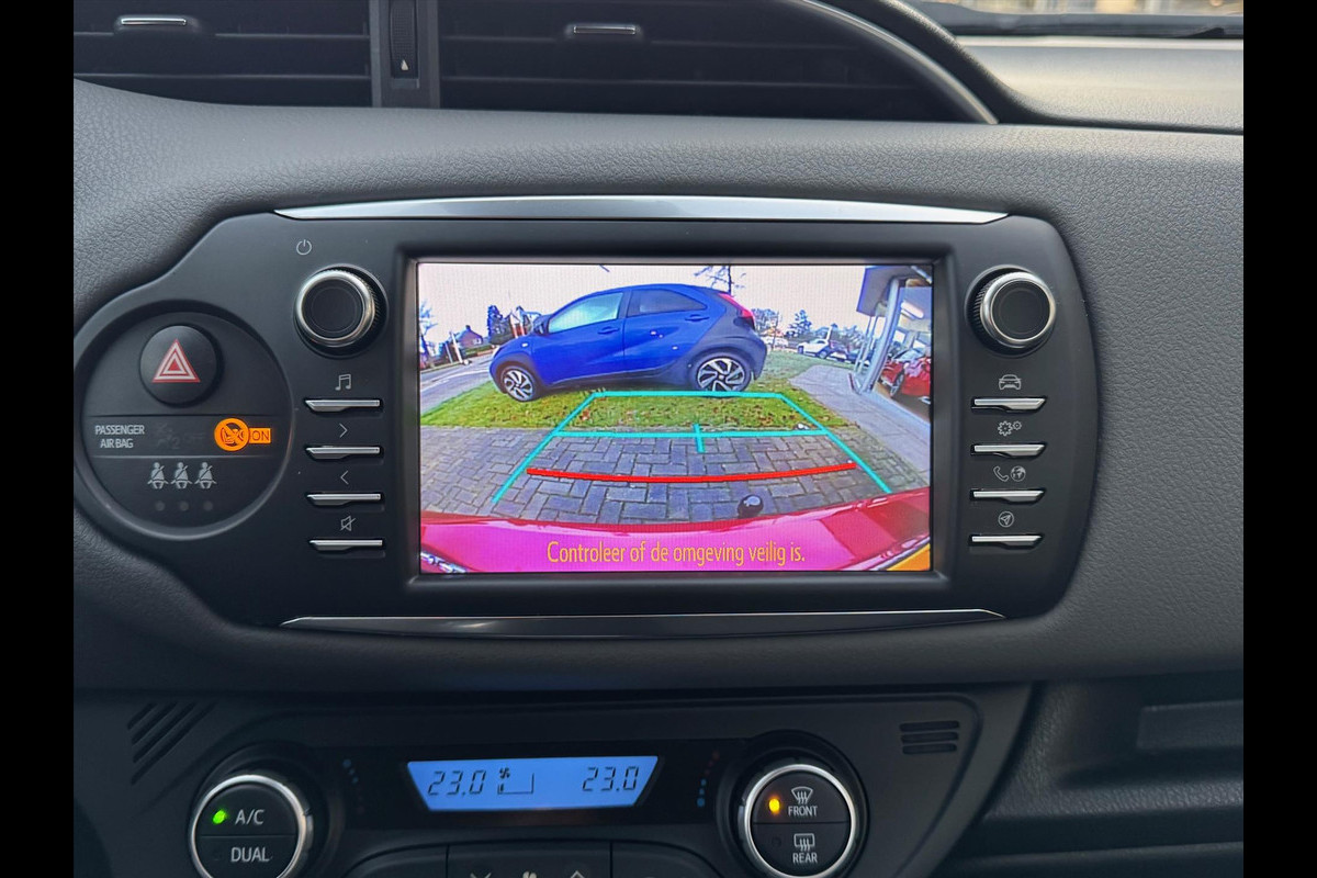 Kommaar-kommaar-kommaar, aldus de parkeerhulp met achteruitrijcamera. Iedere centimeter vrije ruimte komt haarscherp in beeld. Schadevrij inparkeren maar! De automatische airconditioning zorgt onder alle omstandigheden voor een prettige temperatuur. Deze Toyota Yaris is voorzien van een regensensor, zodat de ruitenwissers altijd de juiste snelheid hebben. De cruise control betekent gemak, comfort en zuinig rijden. Via de usb-aansluiting koppelt u een usb-stick, muziekspeler of smartphone met het audiosysteem. Met 3-spaaks lederen stuur, 2 isofix-aansluitingen, centrale deurvergrendeling met afstandsbediening, toerenteller en lederen versnellingspook is deze Toyota helemaal compleet.