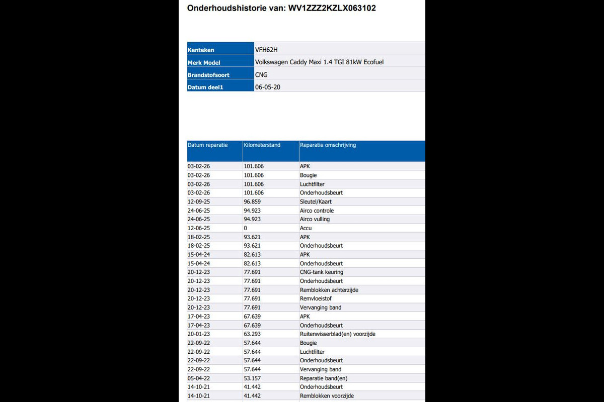 Onderhoudsboekjes: Aanwezig (dealer onderhouden)