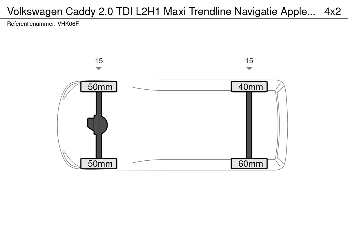 Vooras: Bandenprofiel links: 50 mm; Bandenprofiel rechts: 50 mm