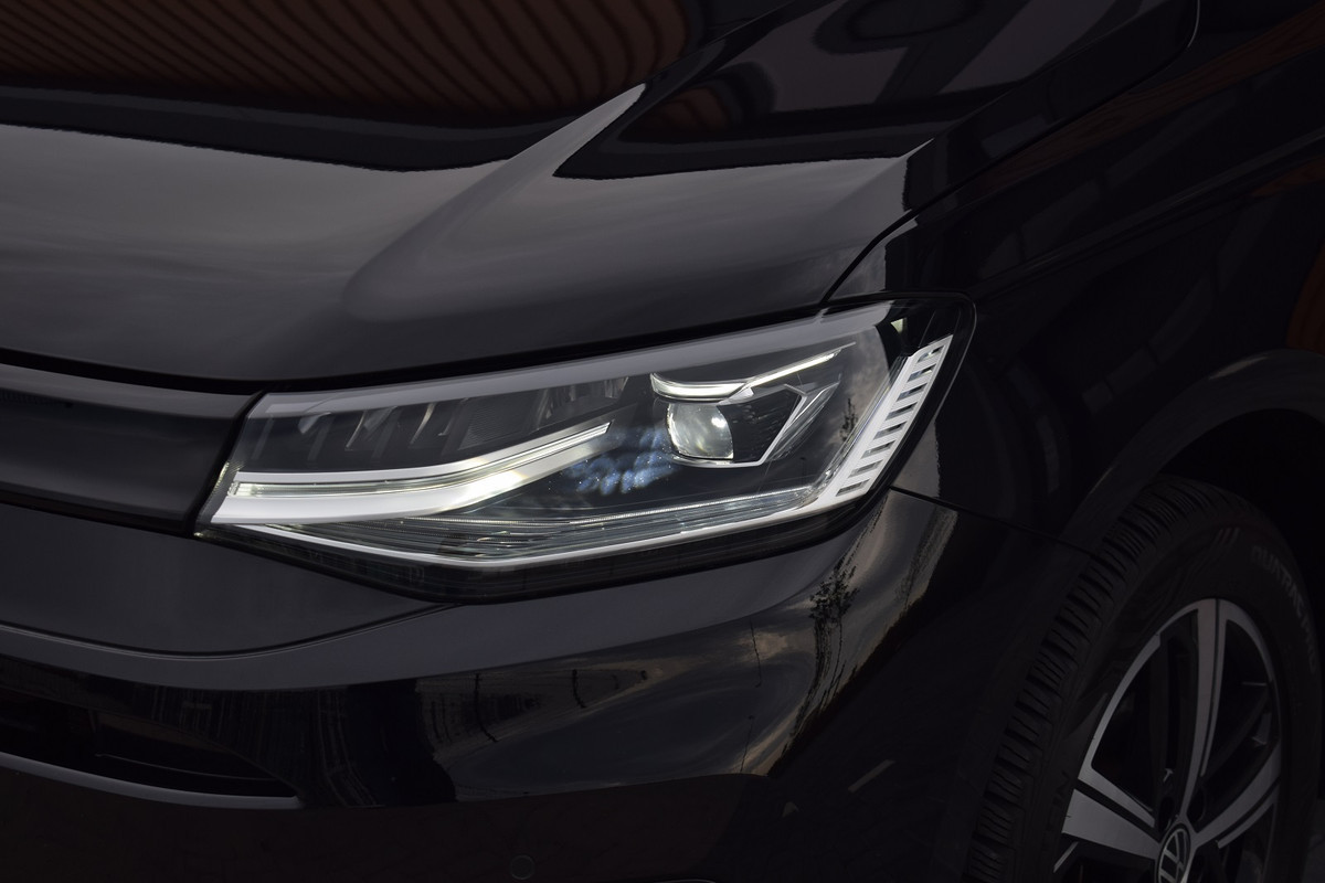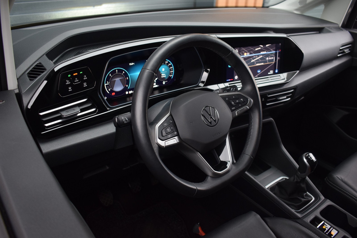 Volkswagen Caddy Cargo 2.0 TDI '75 Edition'. Uitgevoerd met o.a.: Lederen interieur met '75 logo', ergoComfort bestuurdersstoel met elektrisch verstelbare lendesteun, LED koplampen en achterlichten, Navigatiesysteem 'Discover Media', Climate control, Adaptieve Cruise Control, Side Assist, Lederen multifunctioneel stuurwiel, Lichtmetalen velgen 17" 'Colombo', Parkeersensoren voor en achter, Achteruitrijcamera, Buitenspiegels elektrisch verwarm- en inklapbaar, Licht en Regensensor, Trekhaak.
