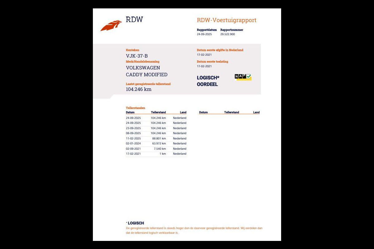Dit afleverpakket bevat: Geldige APK, RDW-leges