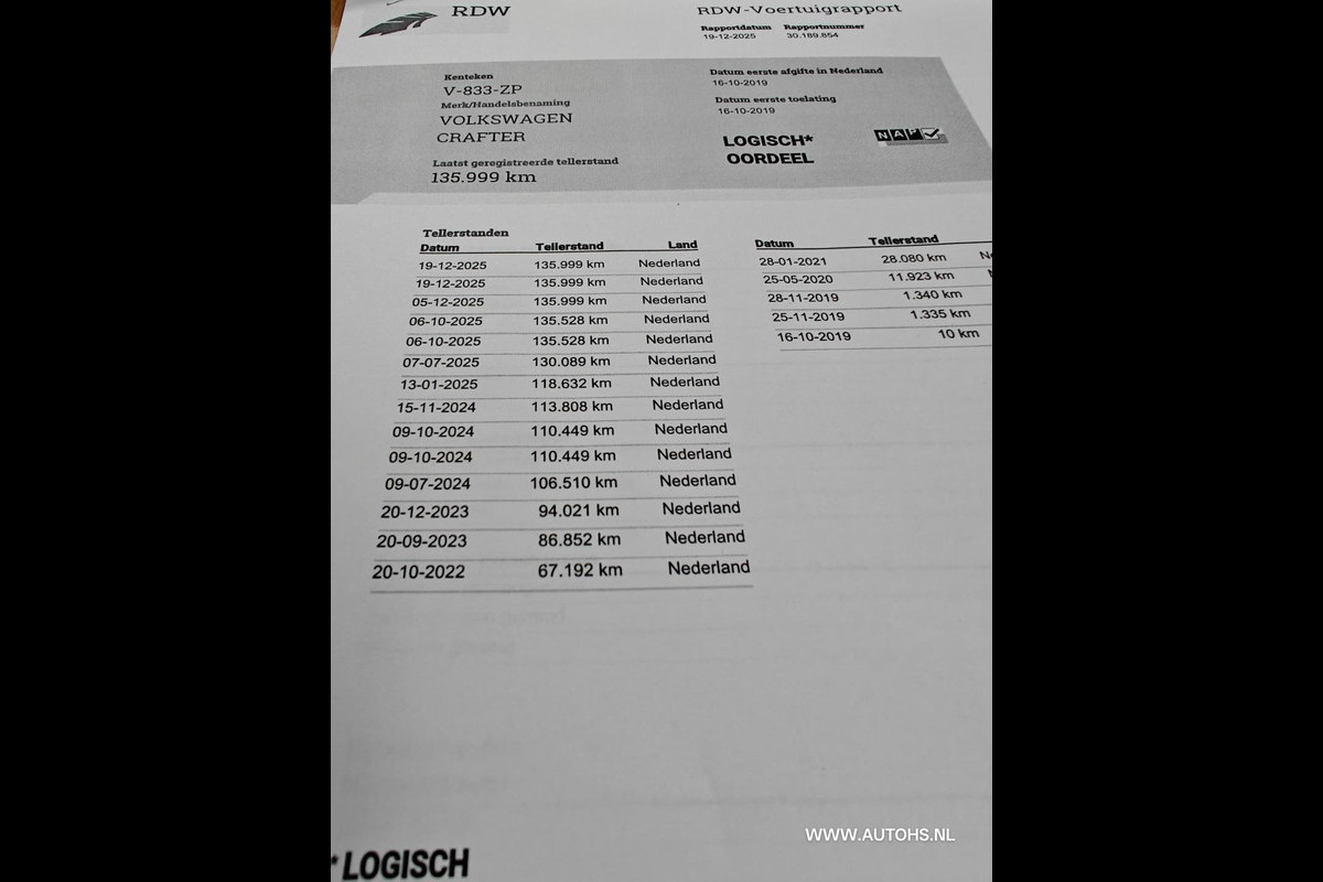 Deze Volkswagen Crafter komt uit 2019, werd geleverd van 19-04-2017 tot 31-12-2019 en kostte toen € 62.150,-. Deze originele Nederlandse bedrijfswagen staat sinds 2019 op kenteken, is voorzien van een diesel-motor, heeft een maximum vermogen van 103 kW (140 PK) en een cilinderinhoud van 1968 cc.