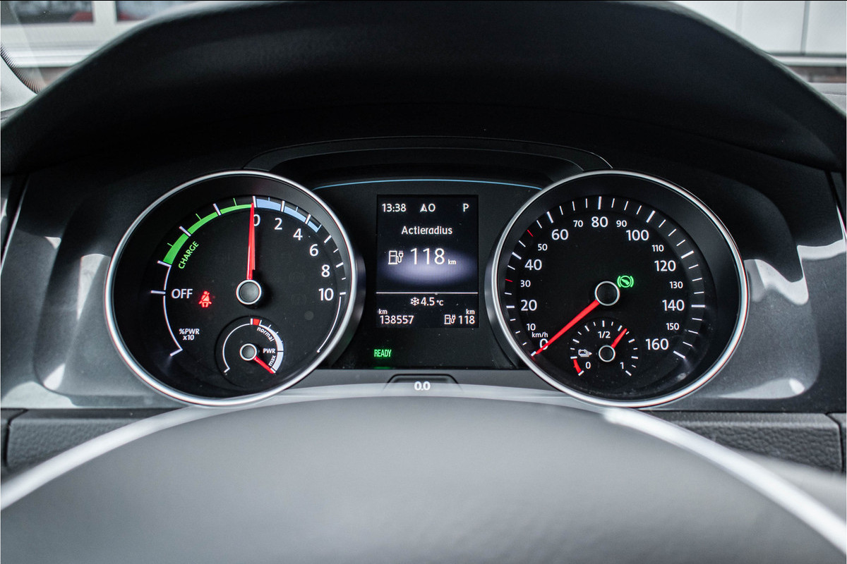 Adaptive cruise control is veilig en comfortabel. De snelheidsregelaar houdt automatisch afstand tot het voertuig dat voor u rijdt. In deze e-Golf vindt u schakelaars op het stuur om het audio-installatiesysteem te bedienen en het full map navigatiesysteem. Radarsensoren aan de achterkant van de auto zorgen voor een achteropkomend verkeer waarschuwing als de afstand tot het verkeer achter te klein wordt. De automatische airconditioning zorgt onder alle omstandigheden voor een prettige temperatuur. De aanwezige parkeersensoren zijn de ultieme hulp om te laten weten hoeveel ruimte er nog is om te manoeuvreren. De uitrusting van deze auto is met regensensor, automatisch dimmende binnenspiegel, lederen stuur, centrale deurvergrendeling met afstandsbediening en boordcomputer behoorlijk compleet.