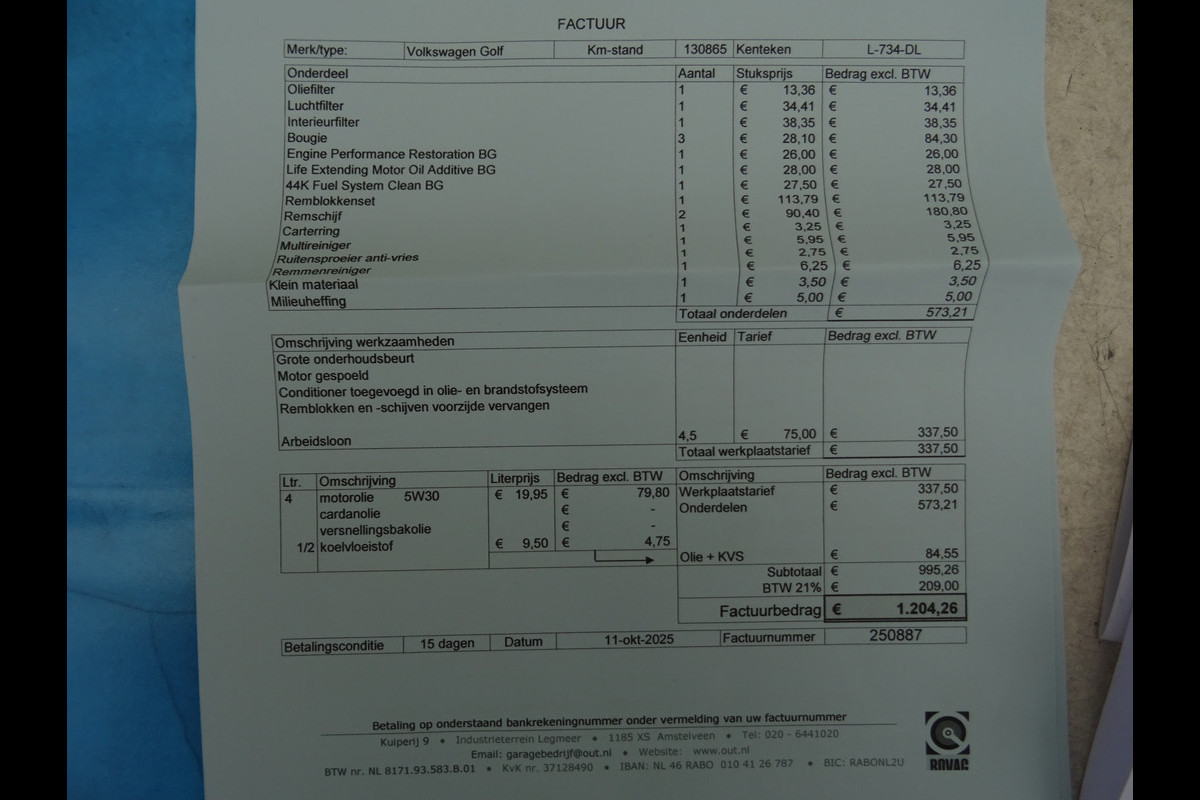 Laatste service is bij 130Dkm uitgevoerd.