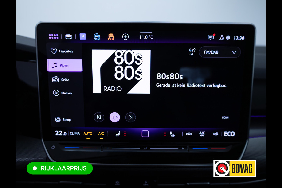 Met het digitale dashboard kunt u de cockpit-interface naar uw voorkeur instellen. Met de 360 graden camera kunt u elk obstakel of gevaar rondom de auto detecteren, wat uw veiligheid verhoogt. Adaptive cruise control houdt de ingestelde snelheid vast en houdt automatisch afstand tot uw voorligger. Kilometerstand? Oliepeil? Accuspanning? Allemaal te zien via de app. Overal. Altijd. Dankzij Connected Services. Uw veiligheid op de weg wordt verhoogd door het audio-installatiesysteem met DAB-ontvangst en het navigatiesysteem te bedienen vanaf het stuur of met spraakbediening, zodat uw handen veilig op het stuur blijven en uw ogen gericht zijn op de weg. De uitrusting van deze Volkswagen is met kruisend verkeer detectie, automatische airconditioning, draadloos opladen, regensensor, automatisch dimmende binnenspiegel en lederen stuur behoorlijk compleet.
