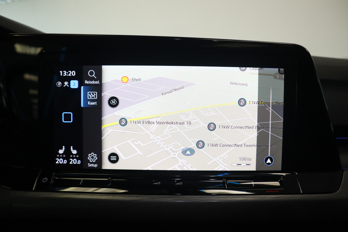 Voor het overzicht tijdens iedere rit is deze Volkswagen Golf voorzien van een gemakkelijk afleesbaar digitaal dashboard. De hoogwaardige achteruitrijcamera en het display met hoge resolutie zorgen dat helemaal niets u meer ontgaat van wat er achter de auto gebeurt. Adaptive cruise control houdt de ingestelde snelheid vast en houdt automatisch afstand tot uw voorligger. Na een lange werkdag in de file: daar zit niemand op te wachten. Gelukkig helpt de file assistent een handje. Het radarsysteem meet de ruimte tot de voorligger en bewaakt de juiste afstand. Stilstaan? Dan remt en stopt de auto vanzelf. Vanaf elke plek contact maken met deze auto: dat kan met behulp van remote services, die u simpel activeert met uw smartphone. En deze auto heeft ook navigatiesysteem met harde schijf, achteropkomend verkeer waarschuwing, kruisend verkeer detectie, electronic climate control, schakelpaddles aan het stuur en draadloos opladen als standaard uitrusting.