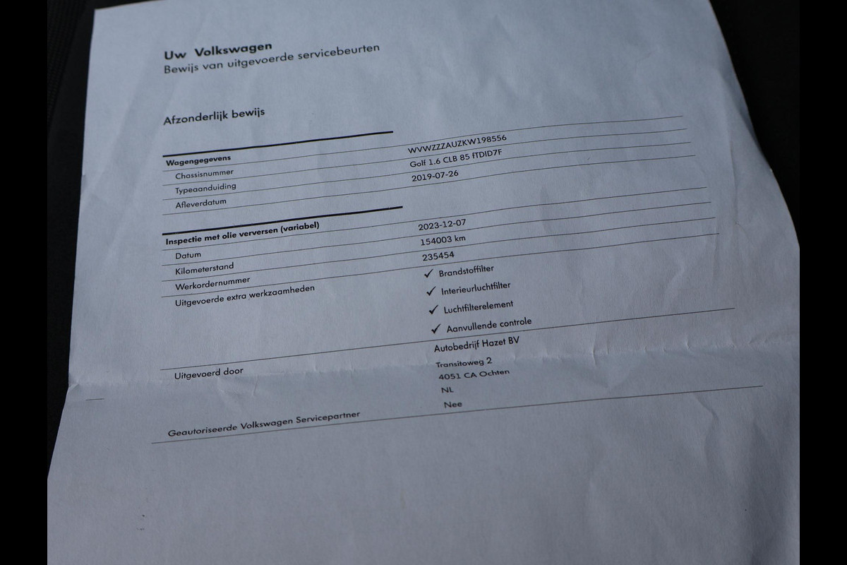 Origineel Nederlandse en 1e eigenaar Volkswagen Golf, BTW verrekenbaar, Nieuw door ons geleverd in 2019, Sinds dien ook bij ons in onderhoud, Distributieriem + waterpomp vervangen 07-2025, 07-2025 ook groot onderhoud gehad (factuur aanwezig van €2875,-) Luxe uitvoering met veel opties, Massage bestuurdersstoel, Stoelverwarming met 3 standen, Apple carplay/Android auto met verschillende opties waaronder: Spotify, Whatsapp en Flitsmeister, Adaptive cruise control met regelbare afstand op de voorganger, Trekhaak, DAB digitale radio, Bluetooth telefoonverbinding met audiostreaming, Bijna €2.000 rest BPM.