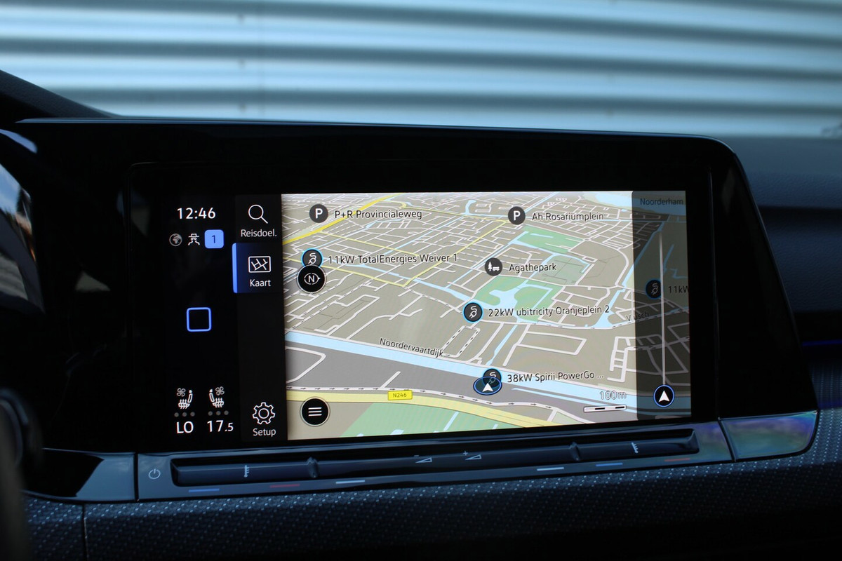 Begeef u op de geweldige rit door de digitale wereld van mobiliteit waar alles wat u wenst voor comfort en veiligheid, wordt geprojecteerd op het digitale dashboard. Afstand schatten bij het achteruitrijden? Niet nodig. U weet het precies, dankzij de achteruitrijcamera. Adaptive cruise control houdt de ingestelde snelheid vast en houdt afstand tot het voertuig voor u. Rijden-stilstaan, rijden-stilstaan. Niks is irritanter en vermoeiender dan filerijden. Daar heeft deze Volkswagen Golf een oplossing voor: de file assistent, die met radarmeting permanent het tempo aanpast op de voorligger. Zelfs als die stopt. Gemak dient de mens. Dankzij de spraaksturing bedient u de belangrijkste functie met uw stem. U bent in deze Volkswagen ook voorzien van connected drive services, Harman Kardon-audiosysteem, full map navigatiesysteem, electronic climate control, sportstuur met schakelpaddels en draadloos opladen.