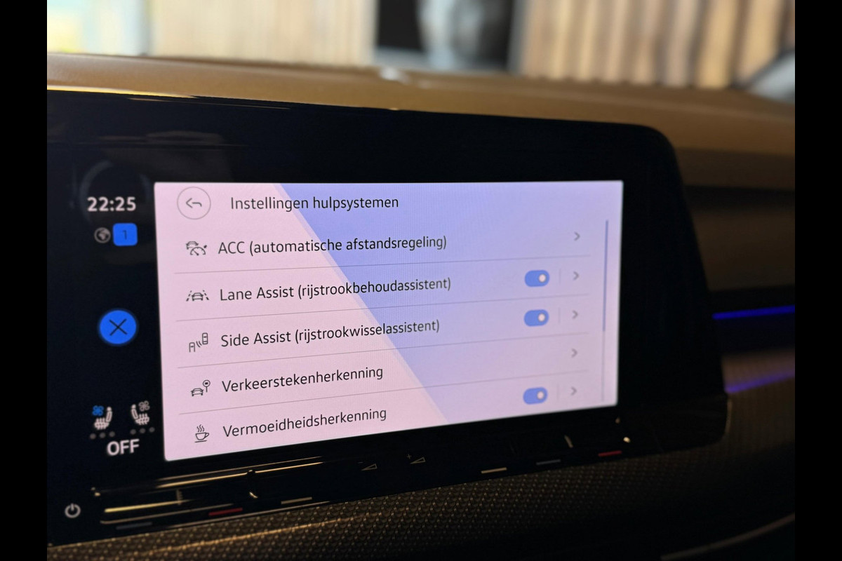 Pragmatisch en veilig als deze auto is, beschikt hij over diverse veiligheidssystemen. Dat de auto steeds meer taken van de bestuurder overneemt, merkt u bijvoorbeeld aan het systeem voor verkeersbord-detectie in deze Volkswagen. Deze Volkswagen Golf is ook behulpzaam als het gaat om een rechte koers. Het Lane-keeping systeem signaleert en corrigeert als u onbedoeld de rijstrooklijnen dreigt te overschrijden. De forward collision warning geeft een botswaarschuwing als een aanrijding dreigt met een voorligger. De veiligheid van deze auto wordt verder verhoogd door dodehoekdetectie, accident avoidance system, hill hold functie, vermoeidheidsherkenning en bandenspanningcontrolesysteem.