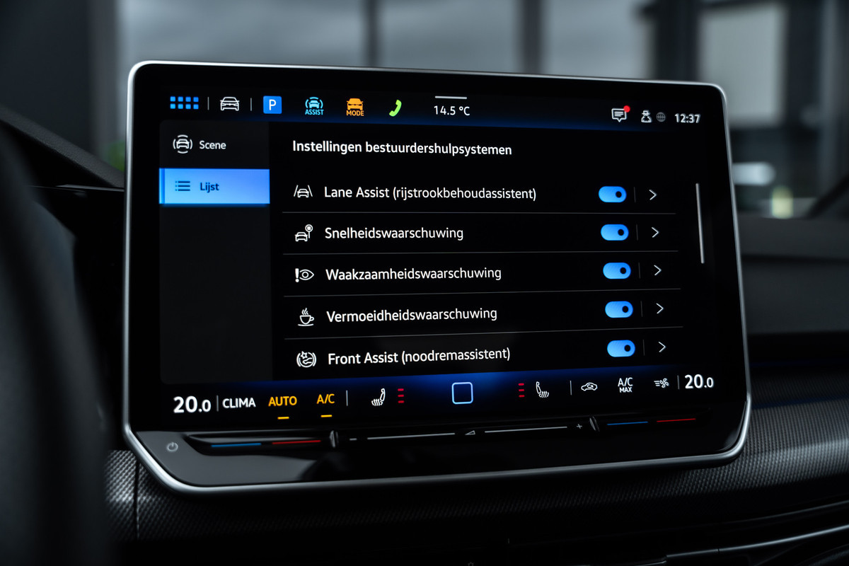 De indeling van het digitale dashboard is zo ingericht dat u met één blik precies weet wat u weten wilt. Parkeer en kijk niet om! De achteruitrijcamera doet dat voor u. Met adaptive cruise control houdt deze auto automatisch afstand tot uw voorligger. Filerijden? Doodvermoeiend. Daarom helpt de file assistent zo nodig een handje. Door automatisch afstand te houden, en te stoppen als uw voorligger stilstaat. De auto's van vandaag rijden niet alleen subliem, maar luisteren ook goed. Via een speciale app kunt u overal diverse functies controleren en de status van de auto inzien. Ook is de Volkswagen uitgerust met: dashboard met spraakbediening, navigatiesysteem, electronic climate control, schakelpaddles aan het stuur, draadloos opladen en DAB ontvangst.