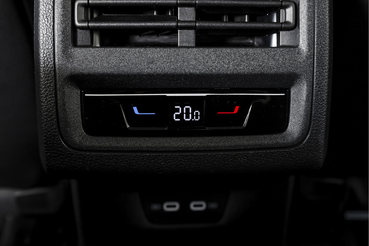 Het panoramische effect in het interieur komt van het elektrisch glazen panorama-dak, dat veel licht binnenlaat. Buiten vallen de auto’s 18 inch lichtmetalen velgen en het R-Line Exterieur op, zonder dat het overdreven sportief oogt. Voor wie in het donker onderweg is, dragen de LED-koplampen bij aan goed zicht.