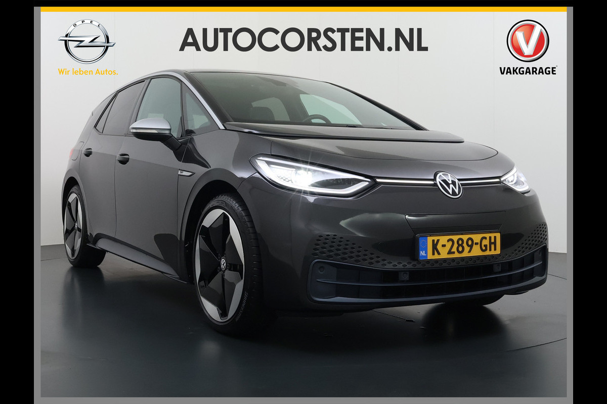 Milieubewust rijden en elke kilometer genieten. Het kan met deze elektrische Volkswagen ID.3. De voordelen van de elektromotor spreken voor zich: stil, schoon en snel! Volkswagen-rijders weten het: een VW is gebouwd voor duurzaamheid en deze ID.3 ziet er dan ook uit als nieuw. Een krachtige motor geeft deze auto zijn sportieve prestaties. De verwarmbare voorstoelen zijn voorzien van een massagefunctie, een weldaad voor rug en schouders in elk seizoen. Onderweg zorgen de comfortstoelen voor een ontspannen rit. Licht en luchtpartijen: u krijgt ze bijgeleverd dankzij het glazen panoramadak. Koude handen? Da's voorbij met het verwarmd stuurwiel. Pak aan! De kwaliteit van de matrix LED-verlichting geeft het gevoel dat u bij daglicht rijdt. Ook 20 inch lichtmetalen velgen, zwarte hemelbekleding, donker getint glas achter, in delen neerklapbare achterbank, LED-achterlichten en verstelbare lendensteunen horen tot de voorzieningen op deze auto.