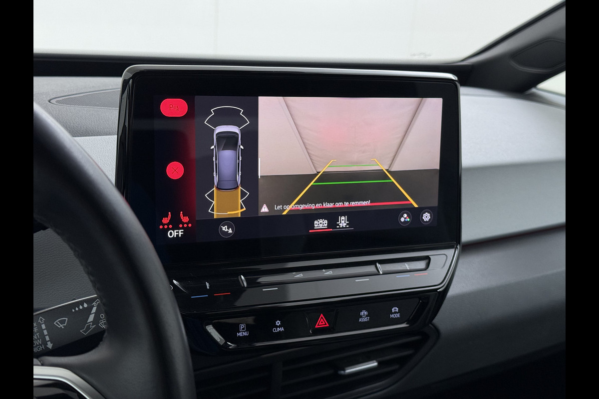 Zoals u mag verwachten van deze Volkswagen ID.3 is hij uitgerust met een reeks aan actieve veiligheidssystemen. In het instrumentarium laat de verkeersborddetectie de actuele verkeersborden zien. Het Lane-keeping systeem let constant op en waarschuwt of corrigeert als u onoplettend over de lijnen van de rijstrook gaat. Ook als uw aandacht even verslapt, blijft de forward collision warning bij de wekker. Dreigt er een botsing met een voor- of tegenligger, dan waarschuwt het systeem direct. De veiligheid van deze auto wordt verder verhoogd door hill hold functie, vermoeidheidsherkenning, autonoom remsysteem en bandenspanningcontrolesysteem.