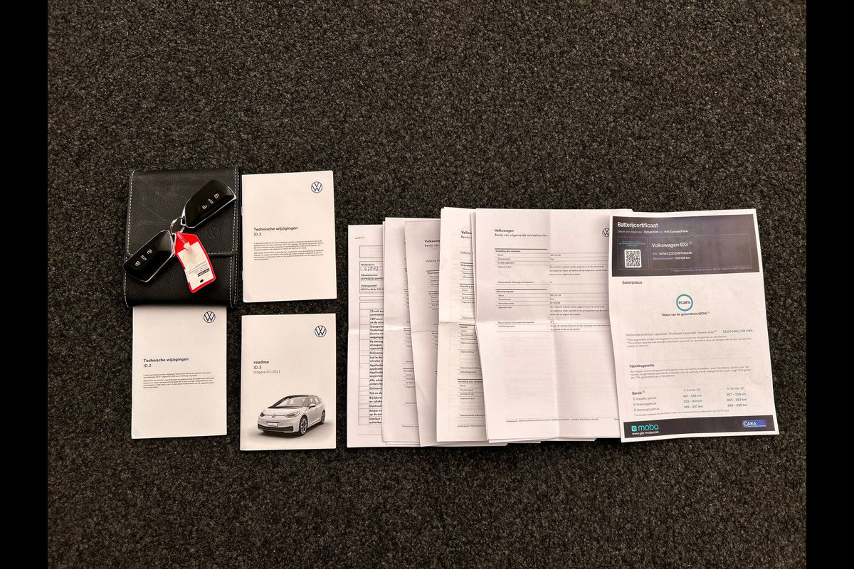 Beide sleutels en alle boekjes en papieren van de auto zijn aanwezig.