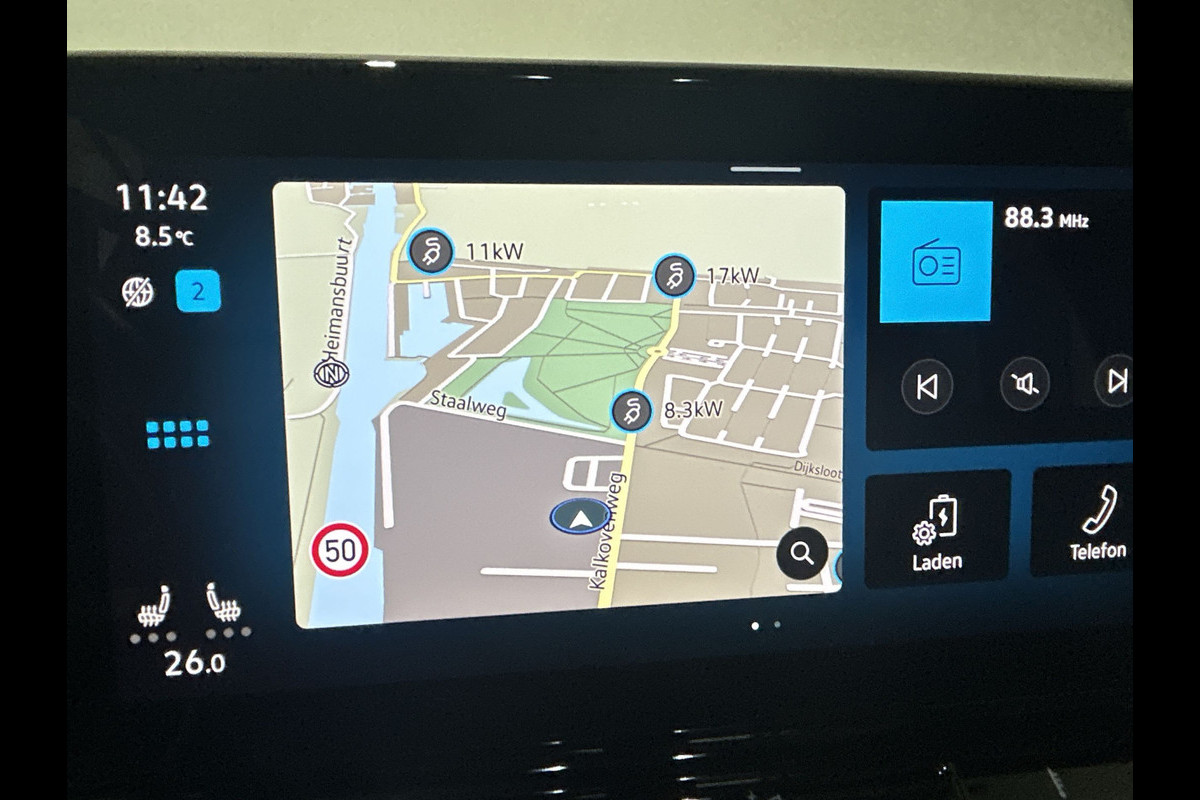 Accu laden: Type 2, 3-fasen, 11 kW, 85 km actieradius per uur, compleet vol in 5 uur en 16 minuten