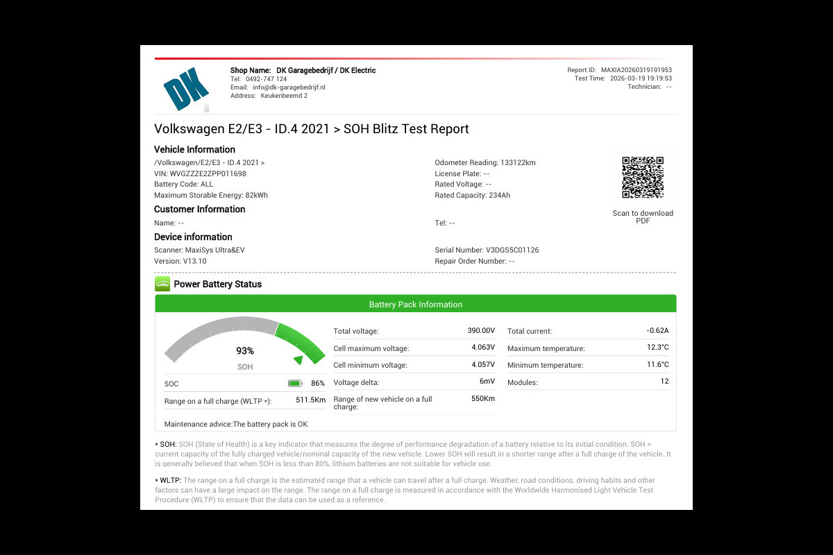 Accu: 77 kWh, Conditie: 93%