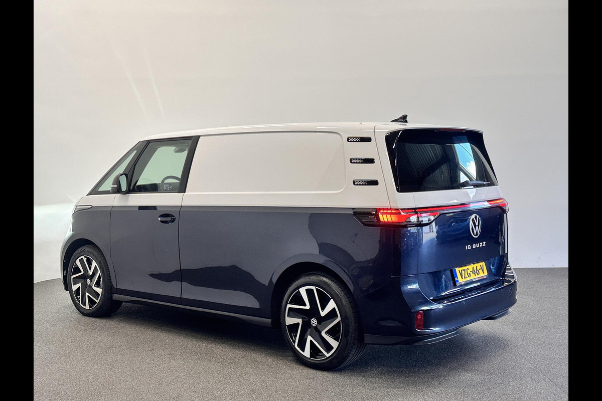 Volkswagen ID. Buzz Cargo 77 kWh SOH 96% Nieuwprijs €71233! Airco Navi Wireless Carplay IQ Light 20" LM Velgen Adaptive Cruise Control PDC VA + Camera Stoelverwarming Voorruit verwarming 3-Zits
